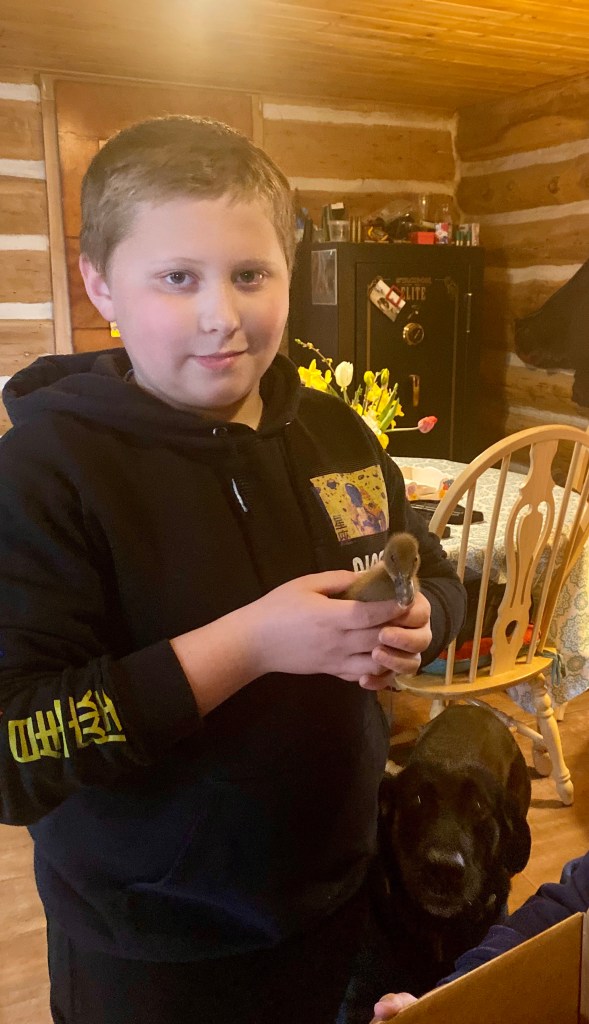 John, once again, came to my rescue and came home with a box of 3 ducklings. I was making dinner and he came up behind me and held up a box. I could hear the tiny chirps and I burst into tears. Fingers crossed that once they are big enough that they imprint on Lucky and that she will accept them as suitable companions.