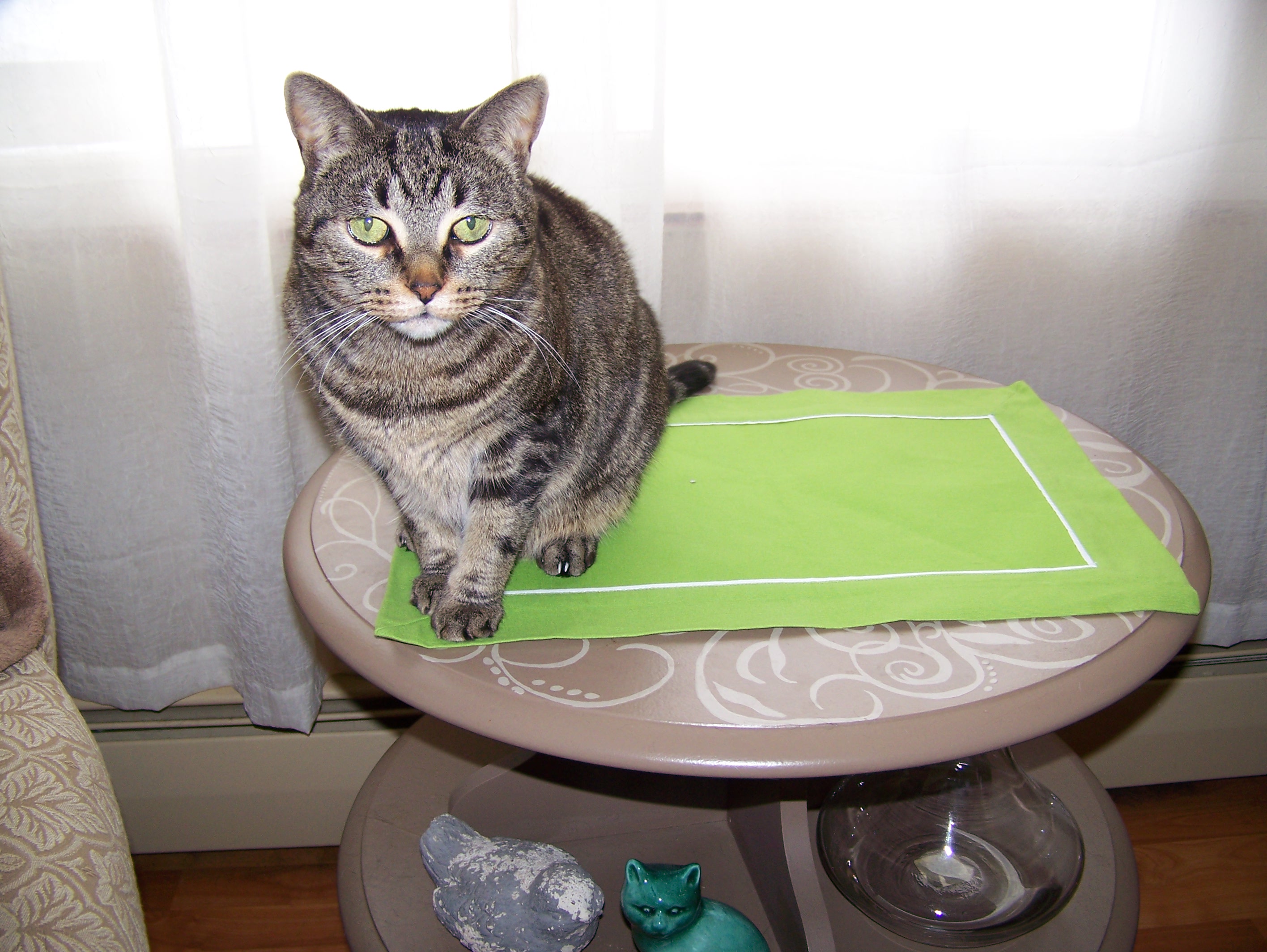 Today was no exception and as I was prepping my table for the smoothie ingredients, Athena was again tempted to check out the area. She must have curled up shortly after because she did