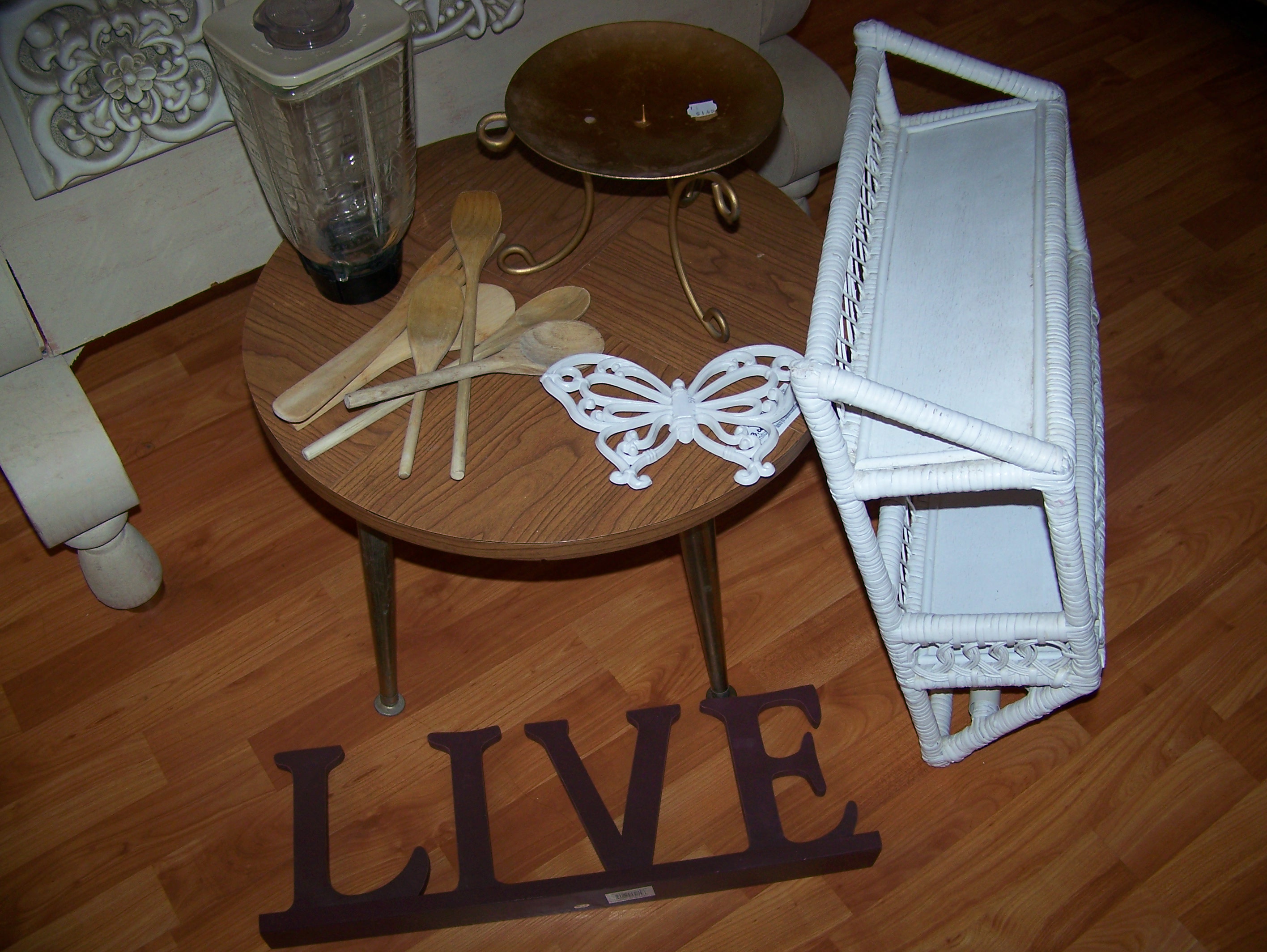 It always makes me feel productive when I share a new recipe and focus on healthy living. I think that blogging will help fill the void of my empty classroom. I am looking forward to sharing more recipes and I even have a post on upcycling thrift store items started. Here is a sneak peek of some of the items that I purchased for a song yesterday. To give you a hint, the post probably will not take root for a couple of months. It needs warm weather and sunshine to help it bloom.