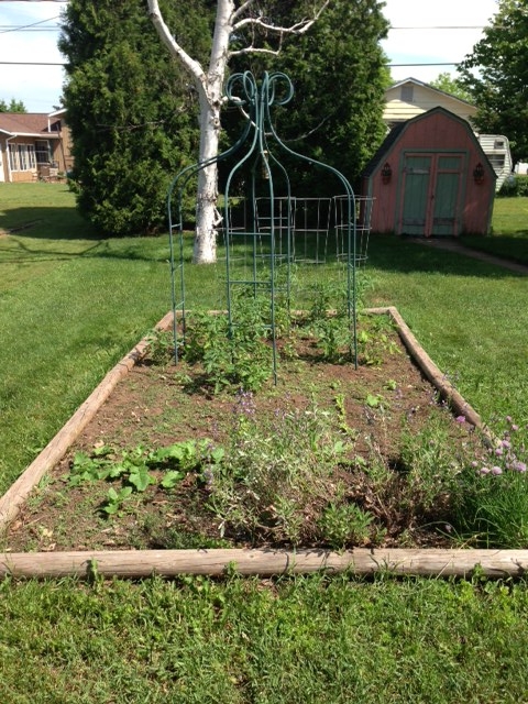 My vegetable garden was planted on June 10th and my tomatoes are starting to thrive in the warm weather we are finally experiencing. My mom, Karen, started my tomato plants from seed and we planted twenty-five. She also gave me spaghetti squash, turnip, jalapeno pepper, eggplant, cabbage, and many flower seedlings. I planted a variety of lettuce,
