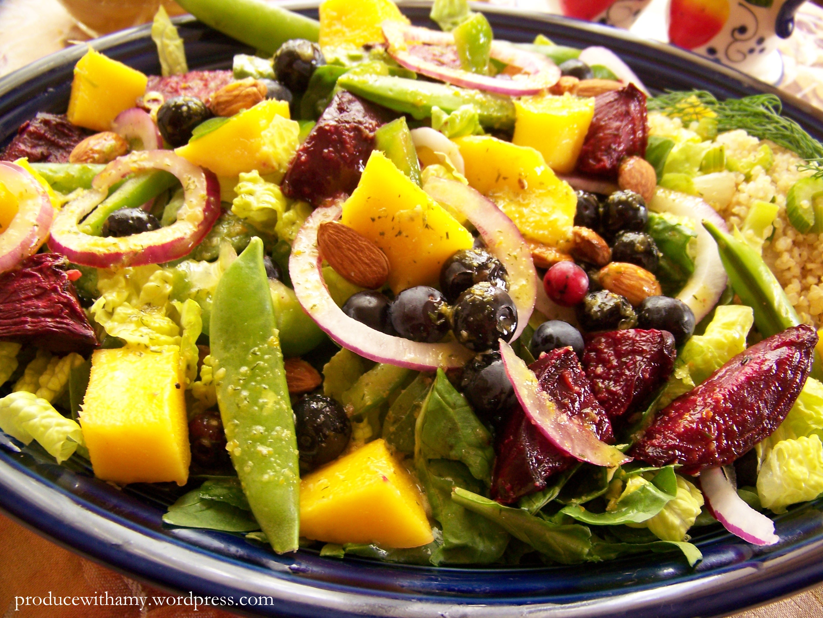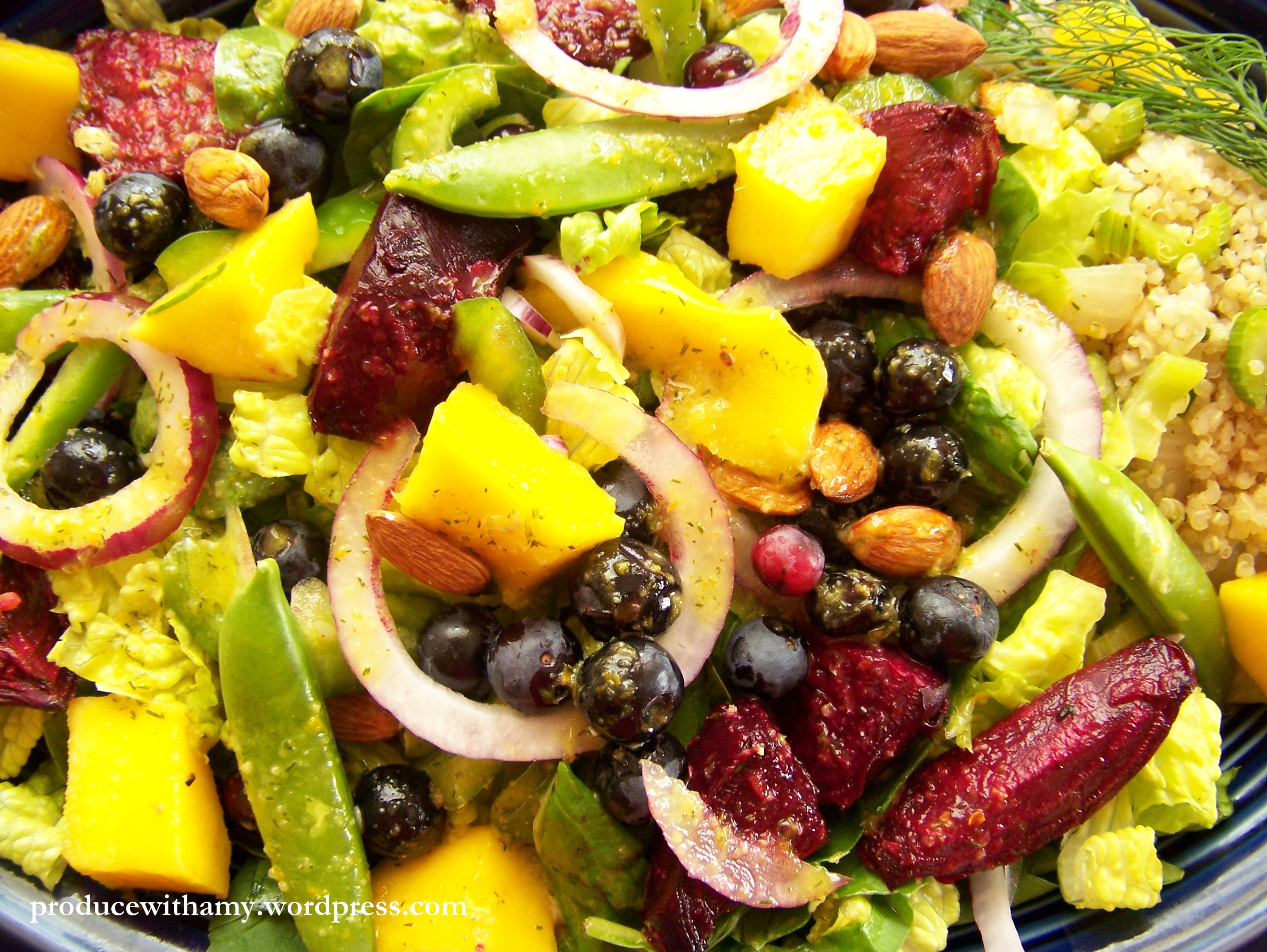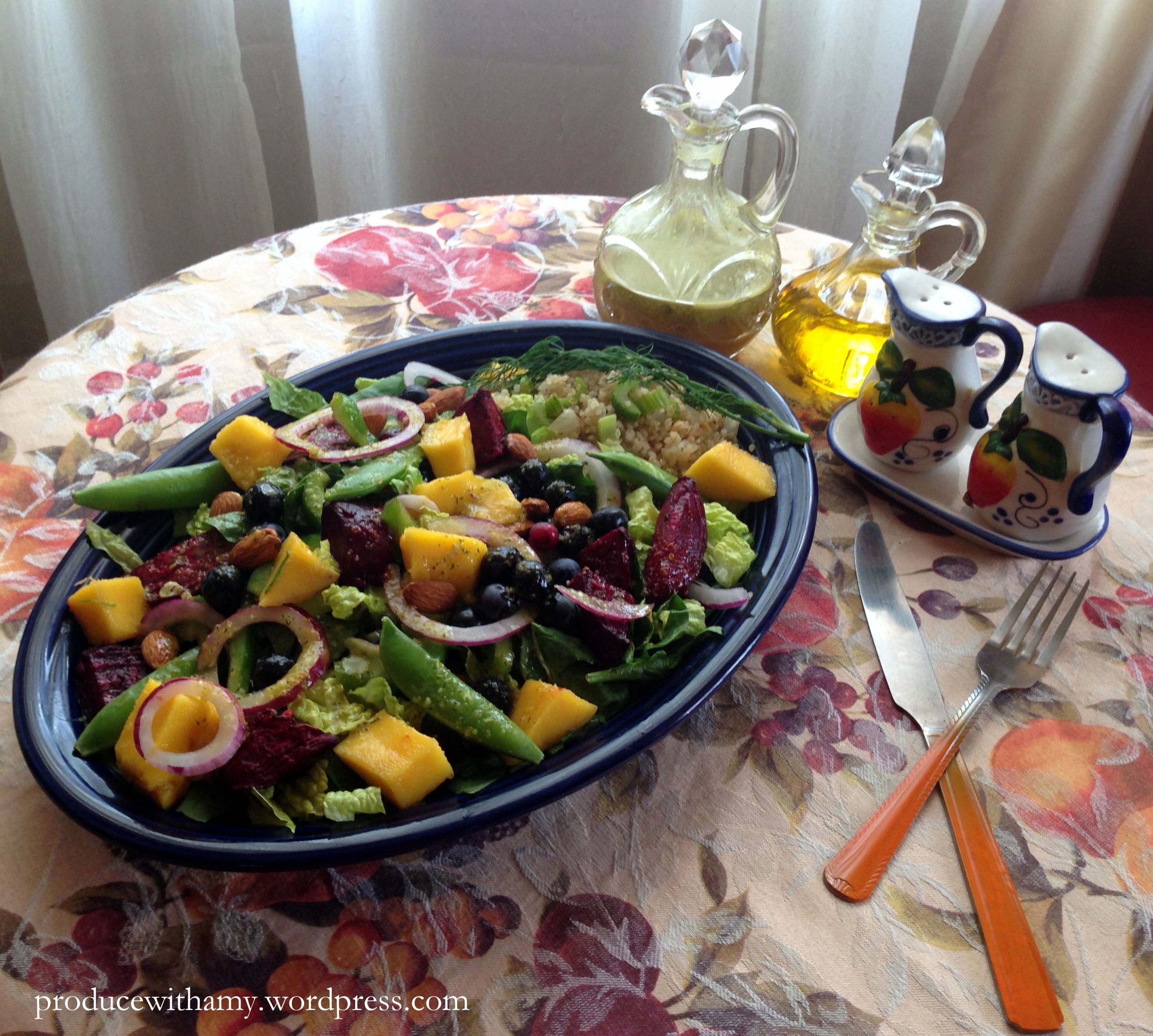 Roasted Beet, Mango, and Blueberry Salad with Orange Dill Dressing
