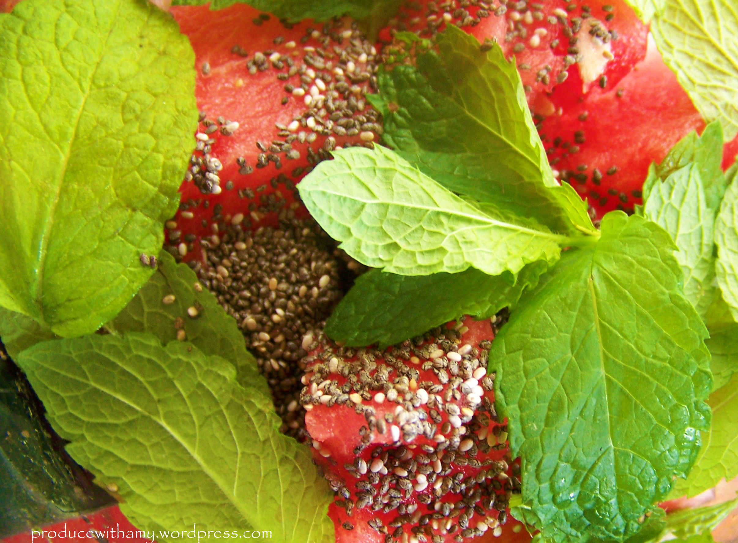- Watermelon, cucumber, spinach, fresh mint, lime, and chia seeds.