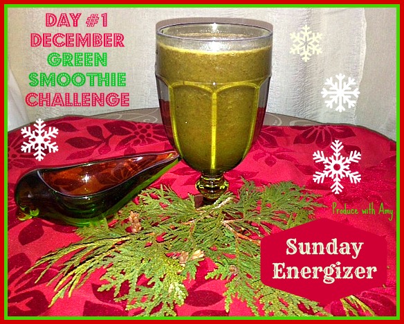 Here is a photo of Sunday Energizer smoothie that I enjoyed this morning. I love the zing that the fresh ginger brings to my glass.