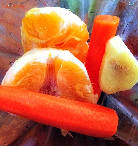 Since oranges are still readily available at the grocers, I decided to add some citrus to our juice.