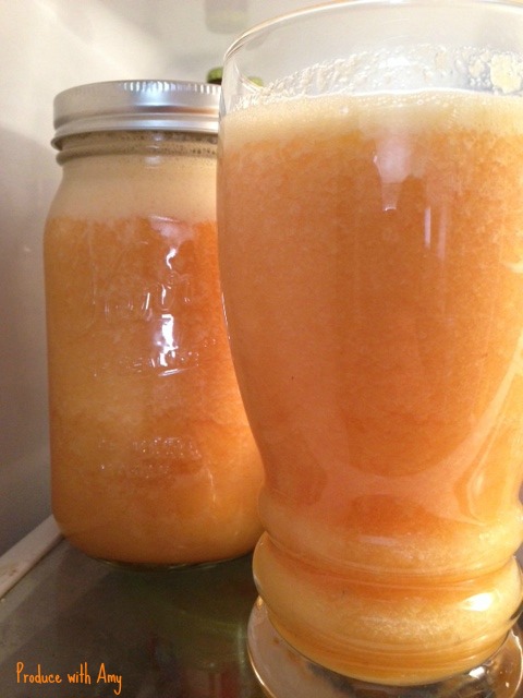 The resulting juice will be quite frothy (it will settle in the refrigerator) and since blending retains the juice it will be thicker than conventional juices. You may add extra water to juice to thin it out. This juice would also be great with the addition of grapefruit and I really like the combination of carrots, apple, and ginger.