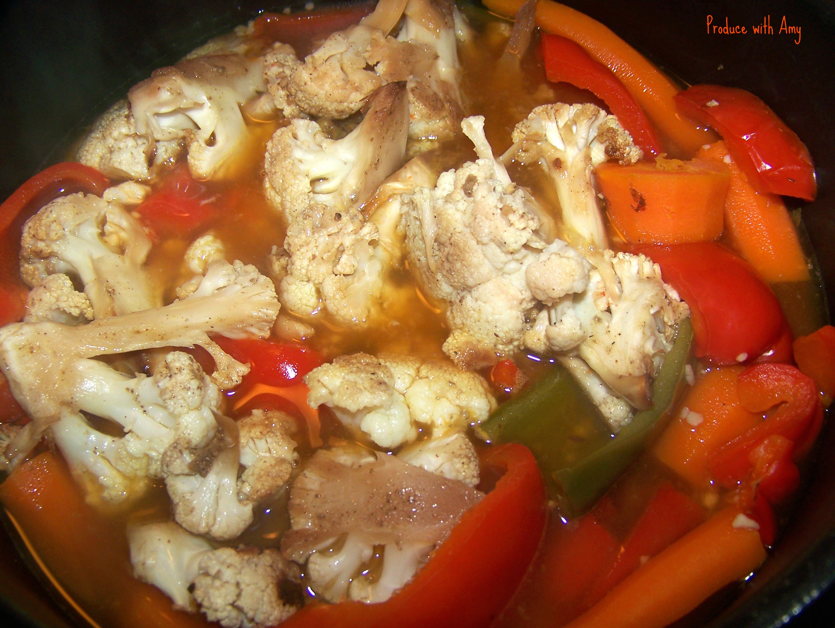 ROASTED CAULIFLOWER SOUP WITH SWEET PEPPERS AND CARROTS