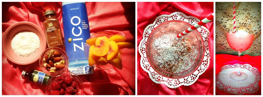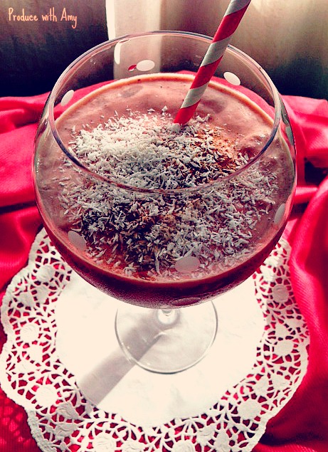 Since I have had recent requests for desserts, I decided that I would share some of my non-green smoothie recipes. The combination that I am sharing today tastes more like a milk shake than a smoothie. It tastes creamy, indulgent, but because it is made with frozen fruit and coconut water, it still has a refreshing edge to it.