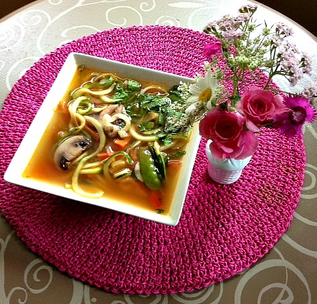 Thank you to Wendy for the great idea of making Zucchini Noodle Soup! This week I am going to make a bowl each day for lunch or to eat with dinner.