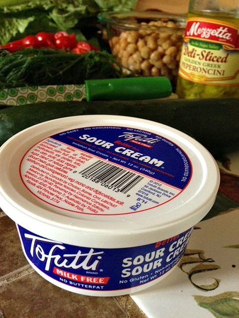 *1 container of Tofutti Dairy Free Sour Cream 12 ounces (if you eat dairy you could substitute plain fat-free Greek yogurt. I recommend the Greek Gods brand)