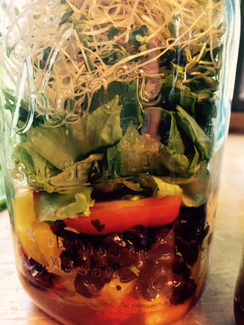 Check out the dazzling visual poem that Abbi wrote in my class the past fall. I think that her poem about canning fits in perfectly with Mason jar salad recipes.