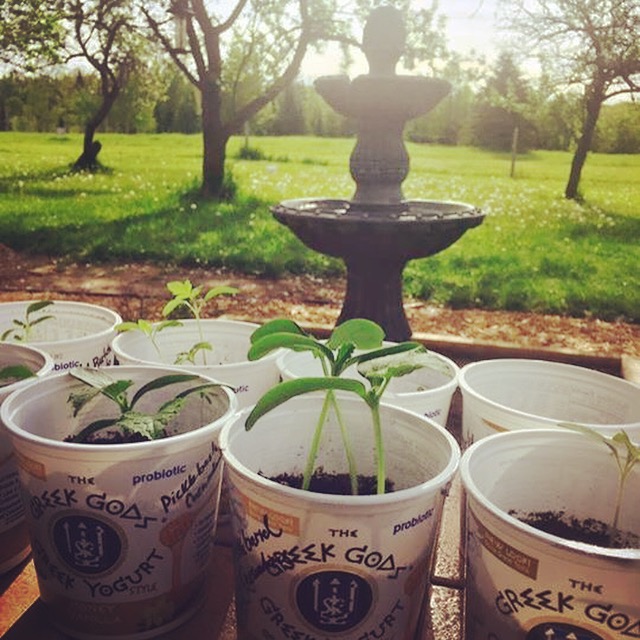 I put the yogurt containers to good use this spring when I started our squash and tomato seedlings.