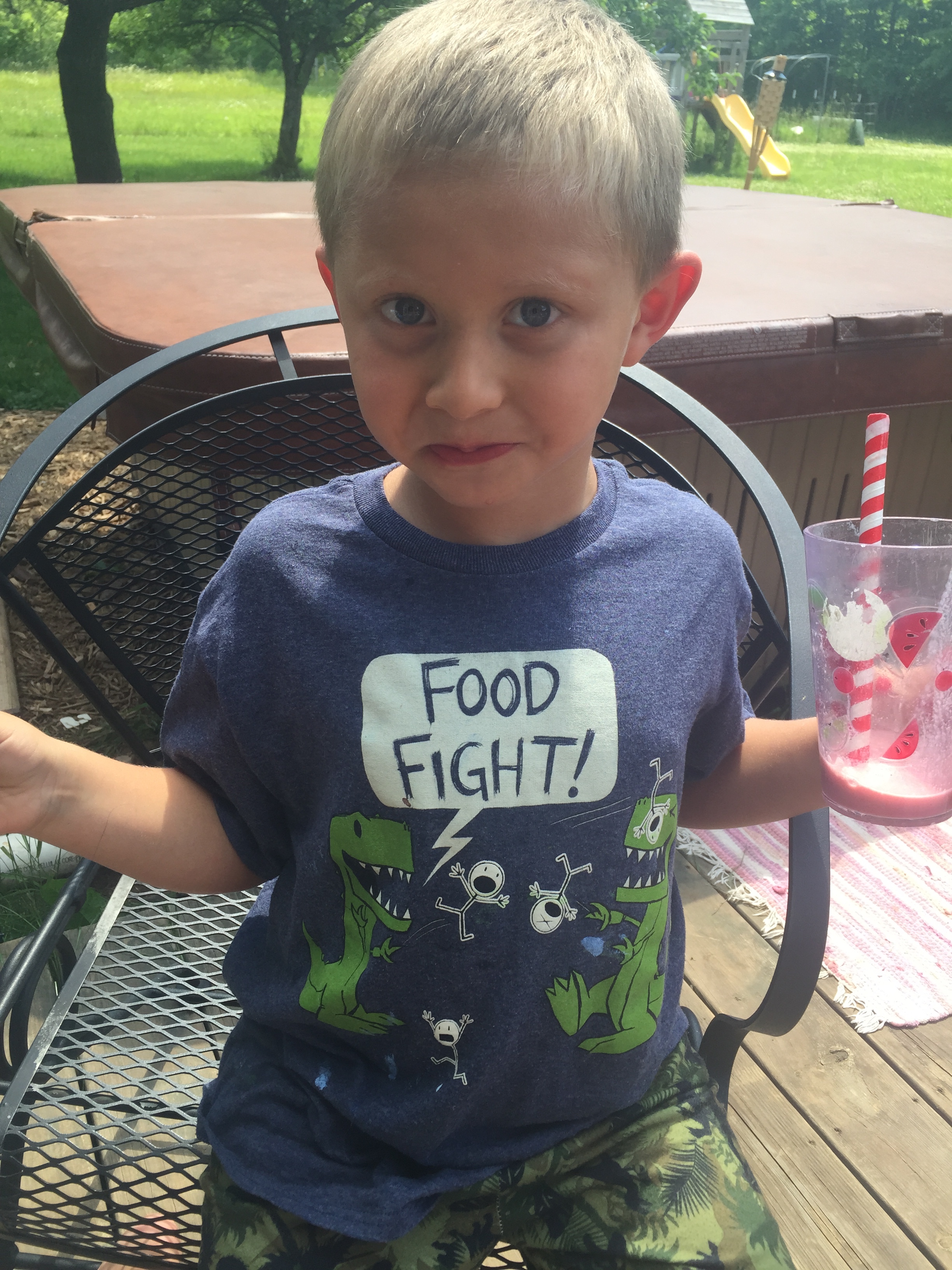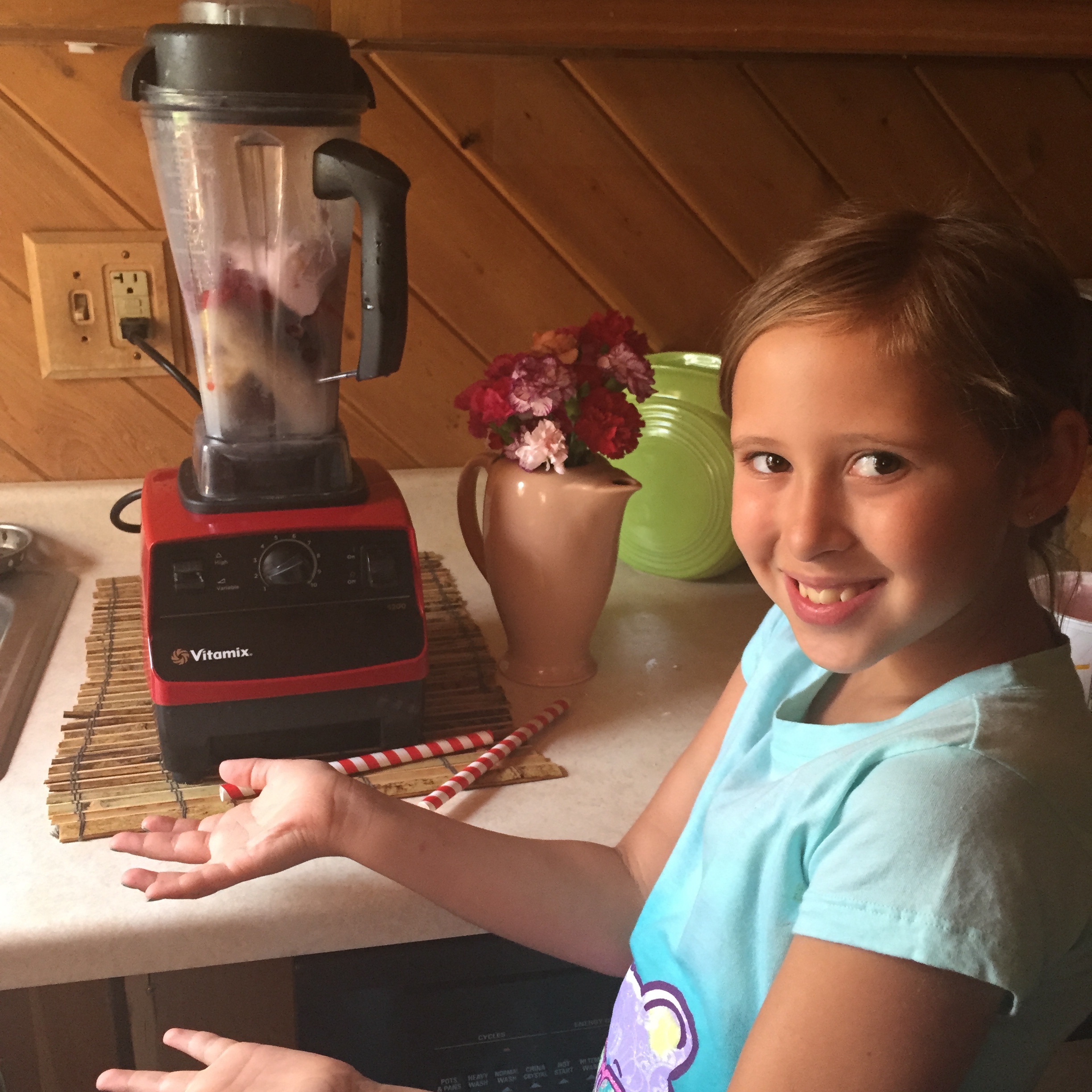 Avalon and Lukas enjoyed their smoothie for breakfast but it would make a great dessert as well. It is a great way to sneak more vitamin and mineral rich fruit into your kids’ diet. Plus, it will help them stay hydrated in the heat.