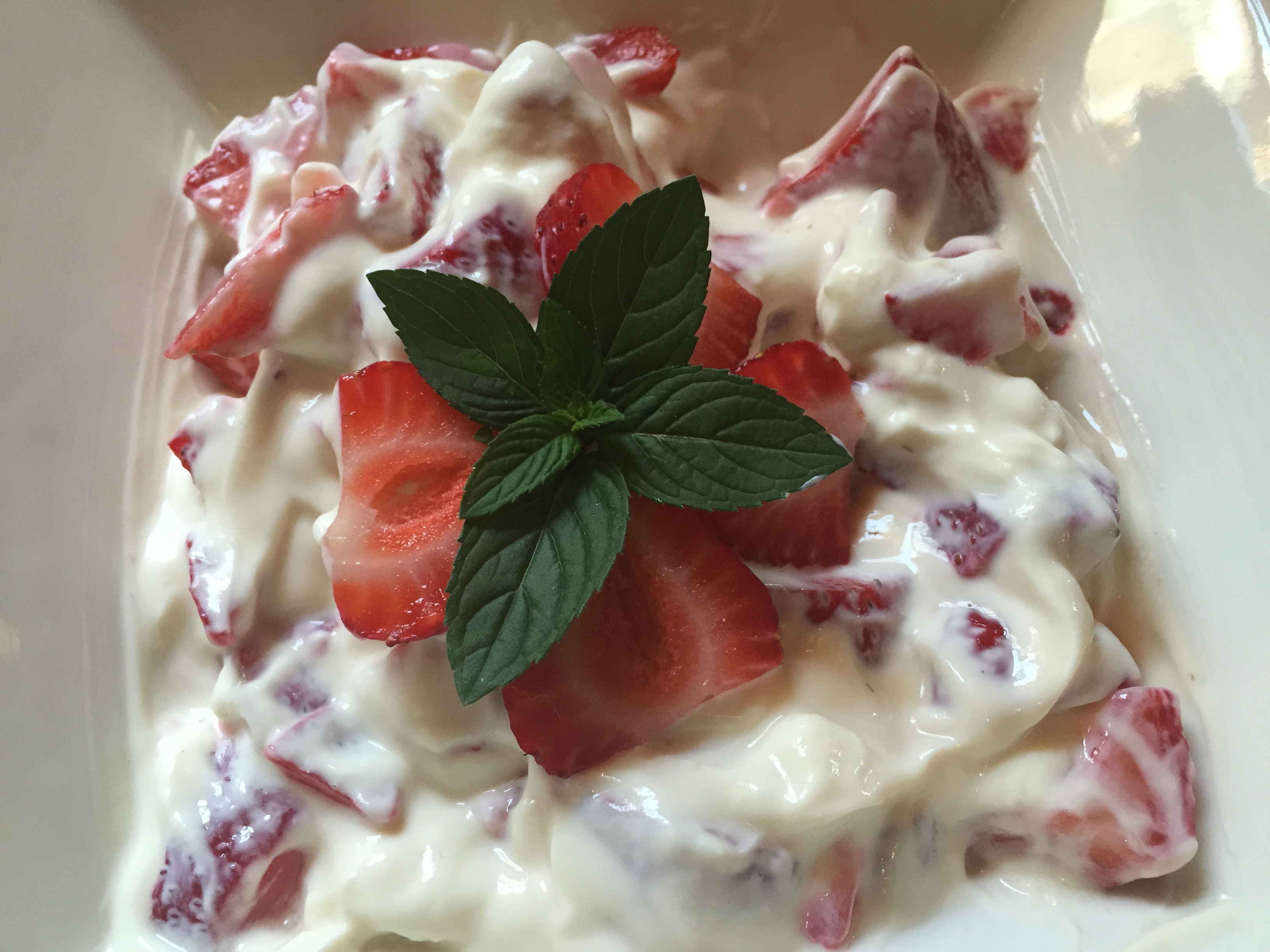 *Fold 1/2 cup fresh sliced strawberries into 1 cup of Honey Vanilla Greek Gods Yogurt (If you eat yogurt you HAVE to try the Greek Gods brands. My family chooses it over ice cream. Lukas and Avalon LOVE the black cherry flavor)