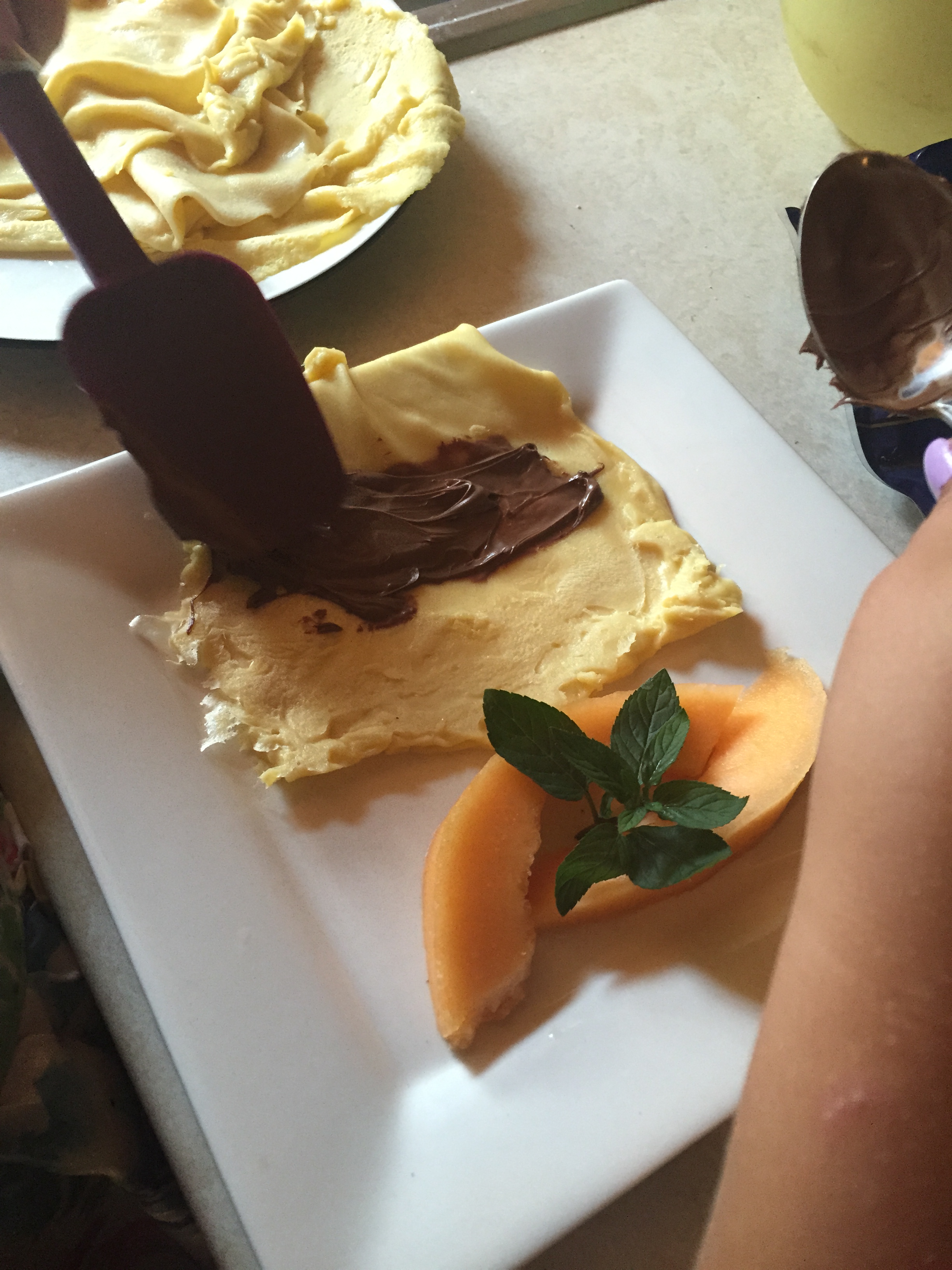 Avalon and I talk about places we would love to travel. While adventures in Italy and Greece are at the top of my list, Avalon often dreams about France. She read a book this spring about a little girl who travels to France and the beautiful, romantic description went straight to her heart. Therefore, I thought that crepes would be the perfect dish for Avalon to create and help her explore her culinary skills – and I was correct. The final product was marvelous and fit for a princess (and prince).