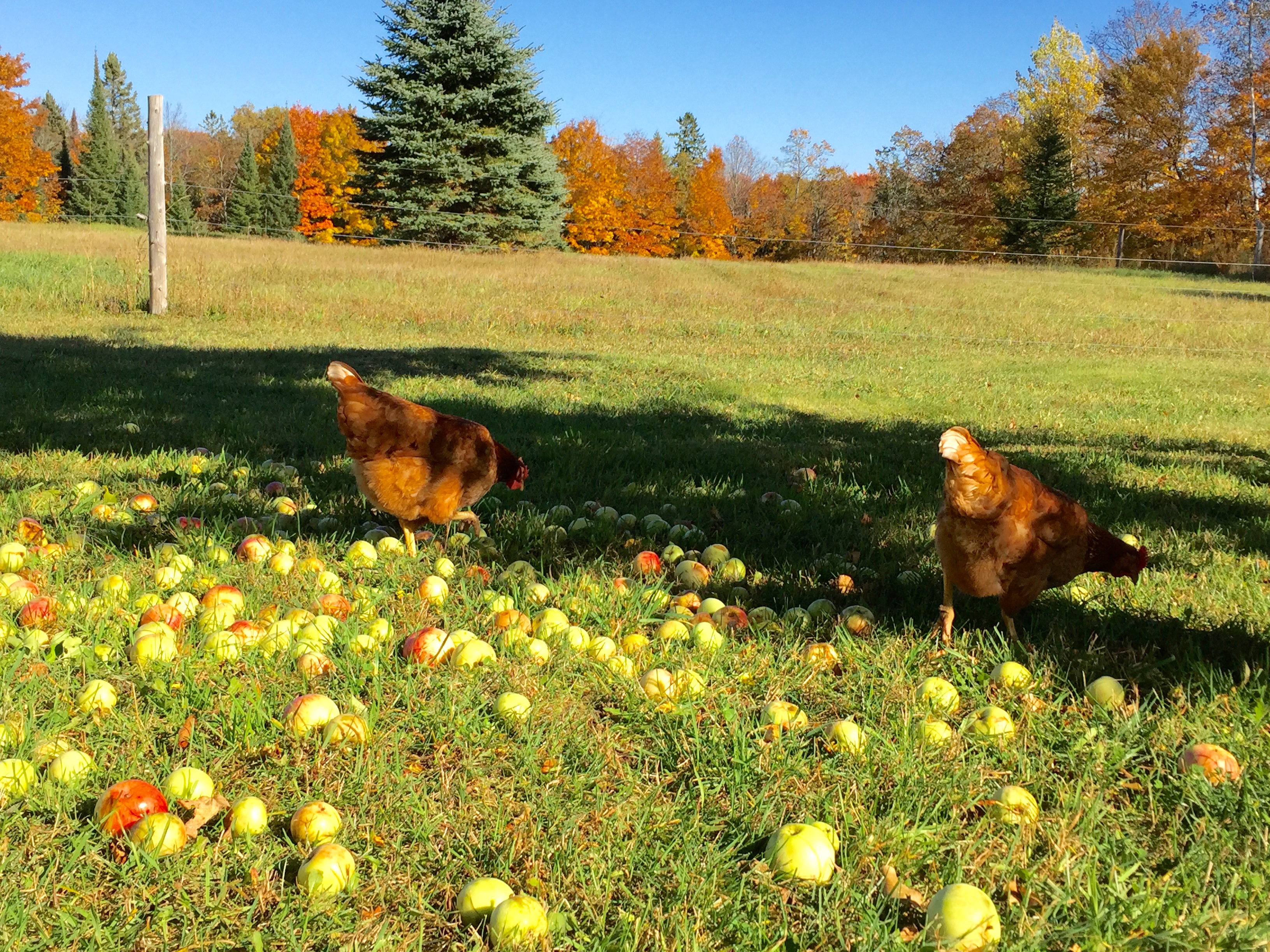 I hope that you have access to farm fresh eggs like we do. If you do not raise your own hens, make sure that you support a local farmer. I never thought that I would have chickens, but as my friends and family would tell you, I have grown quite fond of them. They are sweet, gentle, and love to roam all over the farm. They have been feasting on the sweet apples that fall from our orchard and they wildly chase me to the compost pile to see what treats are in store for them.