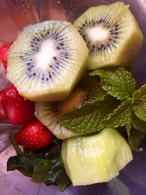 For the smoothie that we are sharing today, Lukas was passionate about including kiwi. He also thought it should have bananas and strawberries. We decided to add a bit of yogurt to the mix and he agreed to even add some spinach. (Adding greens is a huge step – last year at this time he would not have even considered drinking a smoothie – not to mention adding spinach to it).