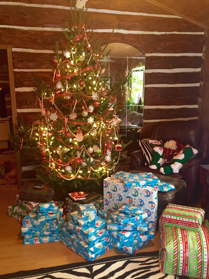 My step daughter Avalon selected this tree from our field. I wanted an old fashioned tree in red and greens. Next year I want to add homemade ornaments.