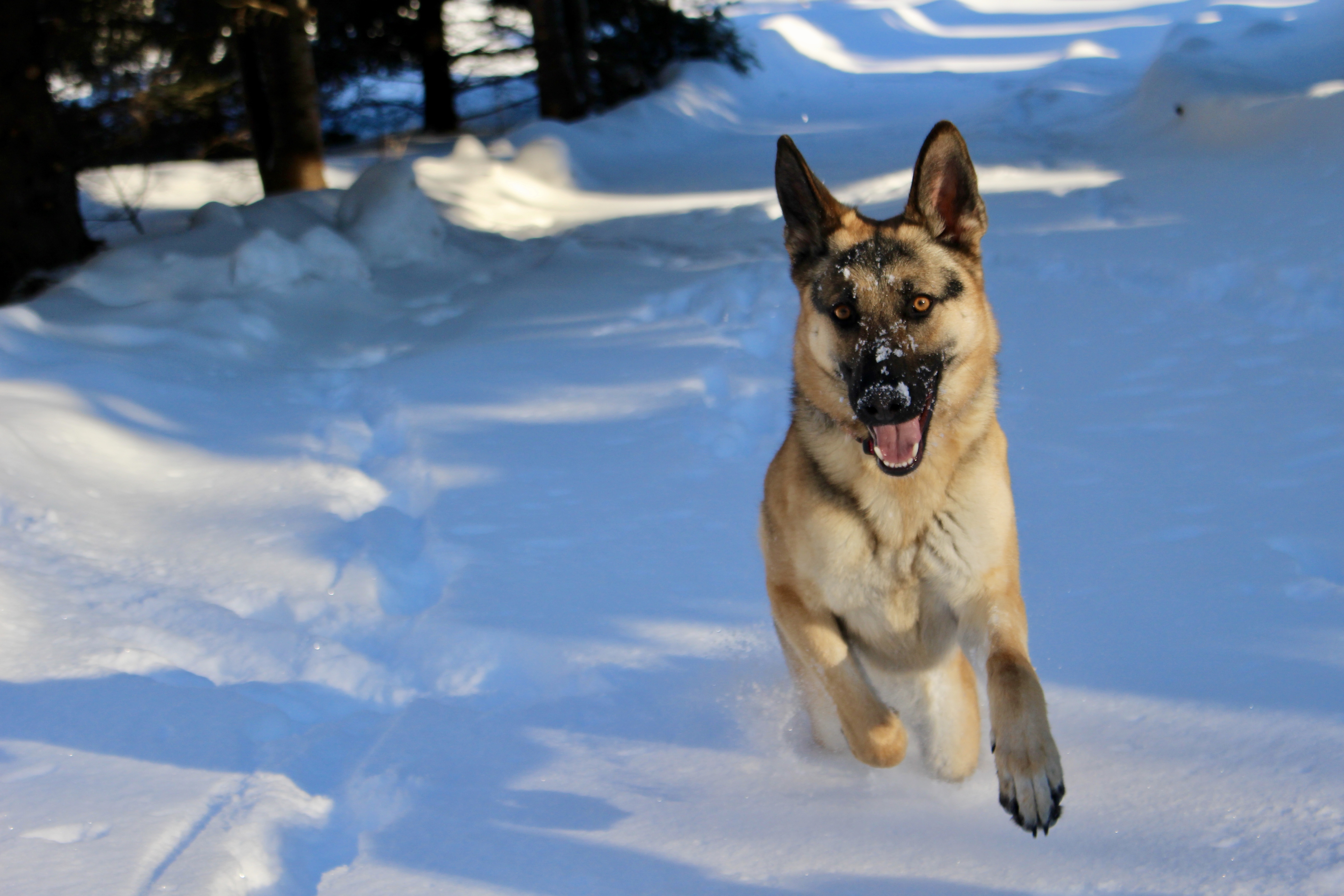 While I still need to work on moving more, my Fitbit is showing increased activity. On Saturday and Sunday I made a concerted effort to get outside and make the most of the sunshine and blue skies. In fact, the views from our property were so inspiring that I have to share them with you. The recent addition to our family, Meesha a two-year-old German Shepherd, is a bundle of frolicsome energy. She made an incredible subject for an impromptu photo shoot and her and Lukas made the best workout buddies. We did not even both to put on our snowshoes but traipsed around in the snow. Let me tell you, it was a workout and I sure can feel it today in my legs and back end. 😉