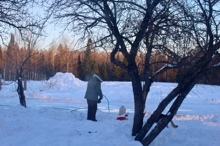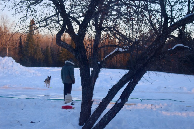 I watched him, like countless time before, from the warmth of our home. He didn’t know I was watching. The light this early evening was brilliant and the air was crystal cold. Most people would be inside, but not him. The chickens needed water and the ice rink needed another layer from the garden hose.