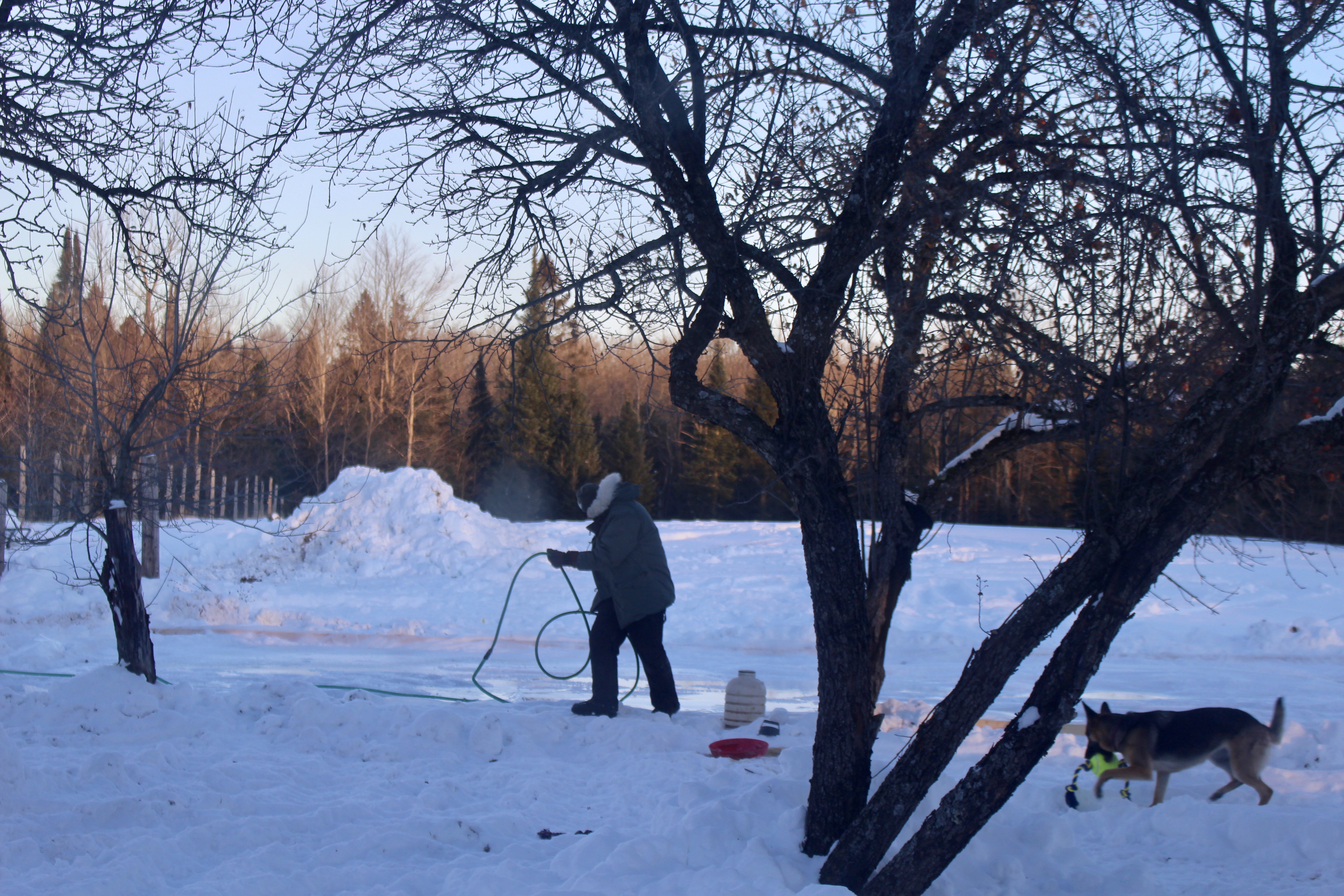I watched him, like countless time before, from the warmth of our home. He didn’t know I was watching. The light this early evening was brilliant and the air was crystal cold. Most people would be inside, but not him. The chickens needed water and the ice rink needed another layer from the garden hose.