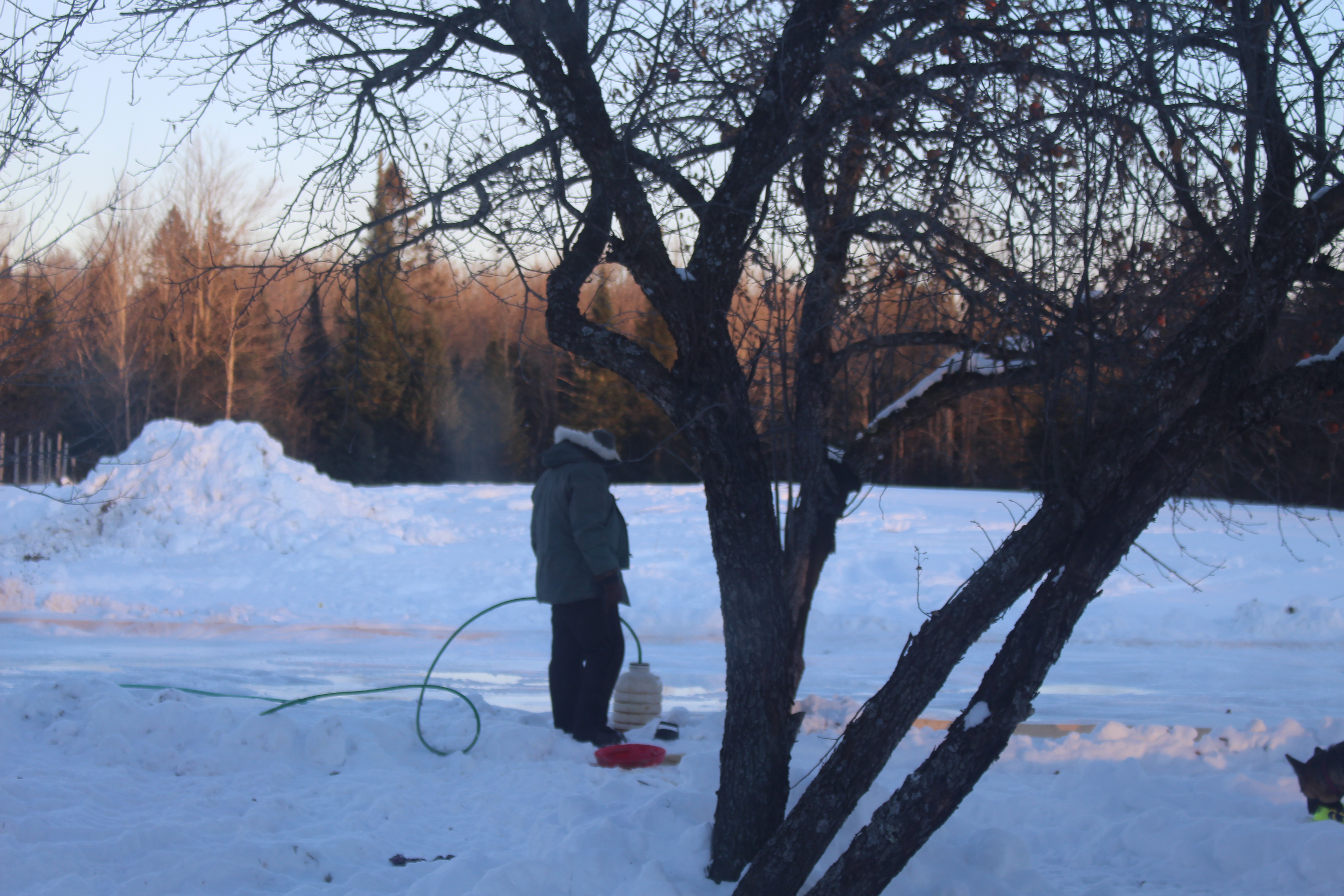 The ice rink is on the side of the apple orchard. Next year we will find a more permanent location. We have plenty of room on our farm.