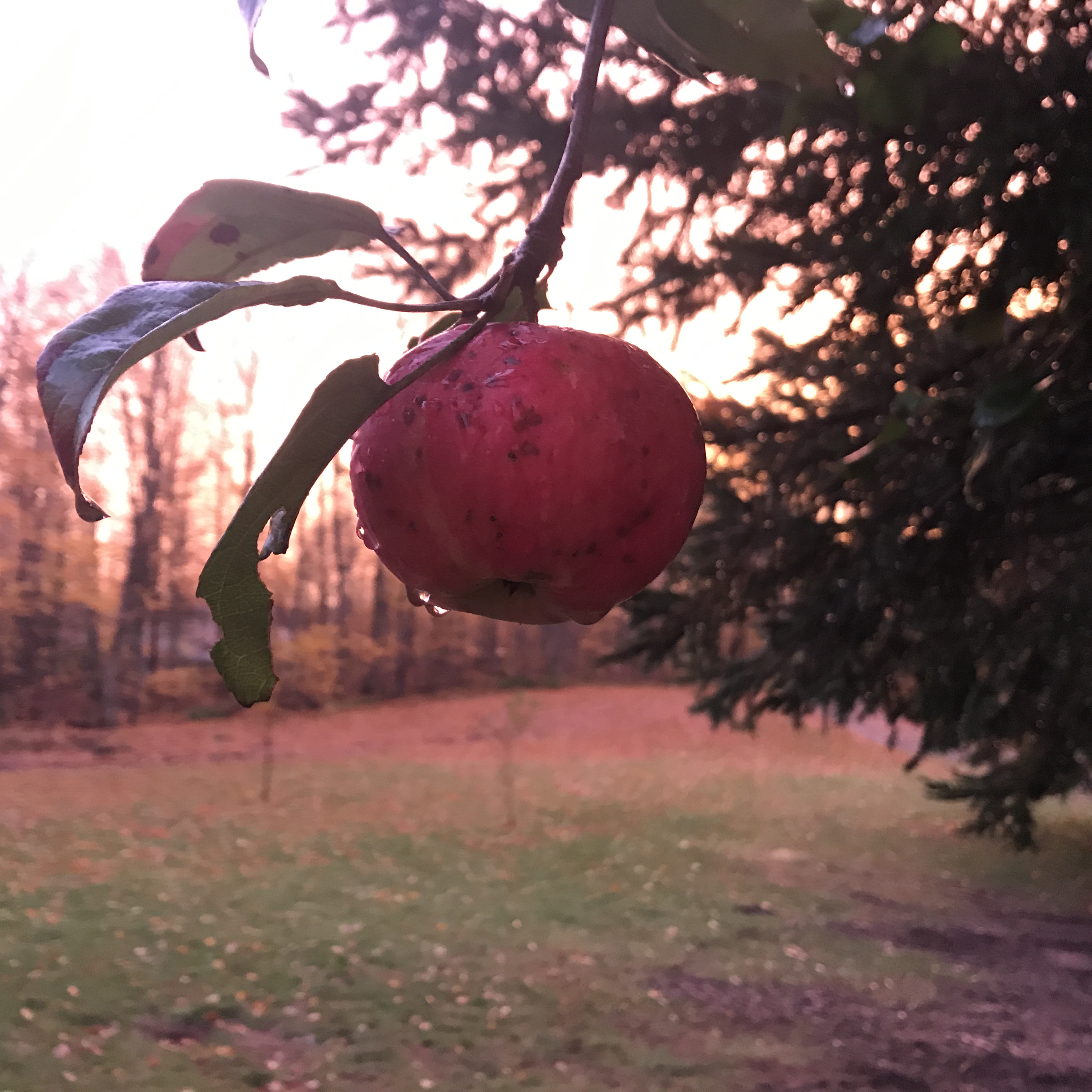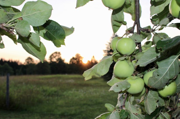 I wonder how many years ago the apple trees in our orchard were planted? The trees give the landscape a personality. I watch them travel from each season and I feel moved by their beauty. The first hint of rosy buds takes my breath away. Their branches move from bony winter to startling green – then the most dizzying display of white and pink ruffled blossoms until their grand display – boughs drooping and heavy with fruit. The orchard shade is often where we pull up chairs to take a quick break from working in the hoop house. It is here that Lukas takes joy in being able to pop an icy root beer (kept just for him in the shop refrigerator) though he is always ready to share that first sip (he is a sweet and thoughtful boy). Were these trees planted in hopes that their canopy would someday provide shelter as well as fruit? Did the people who planted them rest like we do and marvel in the serenity around them? Did they listen to the haunting cry of the cranes and feel wistful when the sky aches green after a thunderstorm like I do?