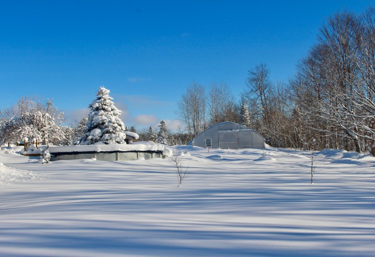 Today is a snow day off of work/school and to say that I have spring fever is an understatement. I have been dreaming of leafy green vegetation since the first hint of snowflakes graced the sky. A couple of weeks ago my husband John planted trays of seeds in our family room window, and in front of our sliding glass door. Daily we watch the thermometer that measures the temperature in our hoop house – waiting until it is warm enough at night to start planting the seedlings. Today it is only 30 degree in the hoop house, but on sunny days it has been reaching the low 50s. Last summer was our first taste of large scale gardening and we are hooked. Winter was our time to dream and make plans for even better produce.