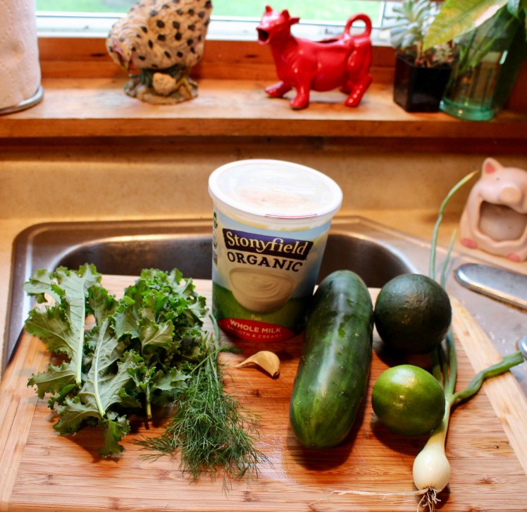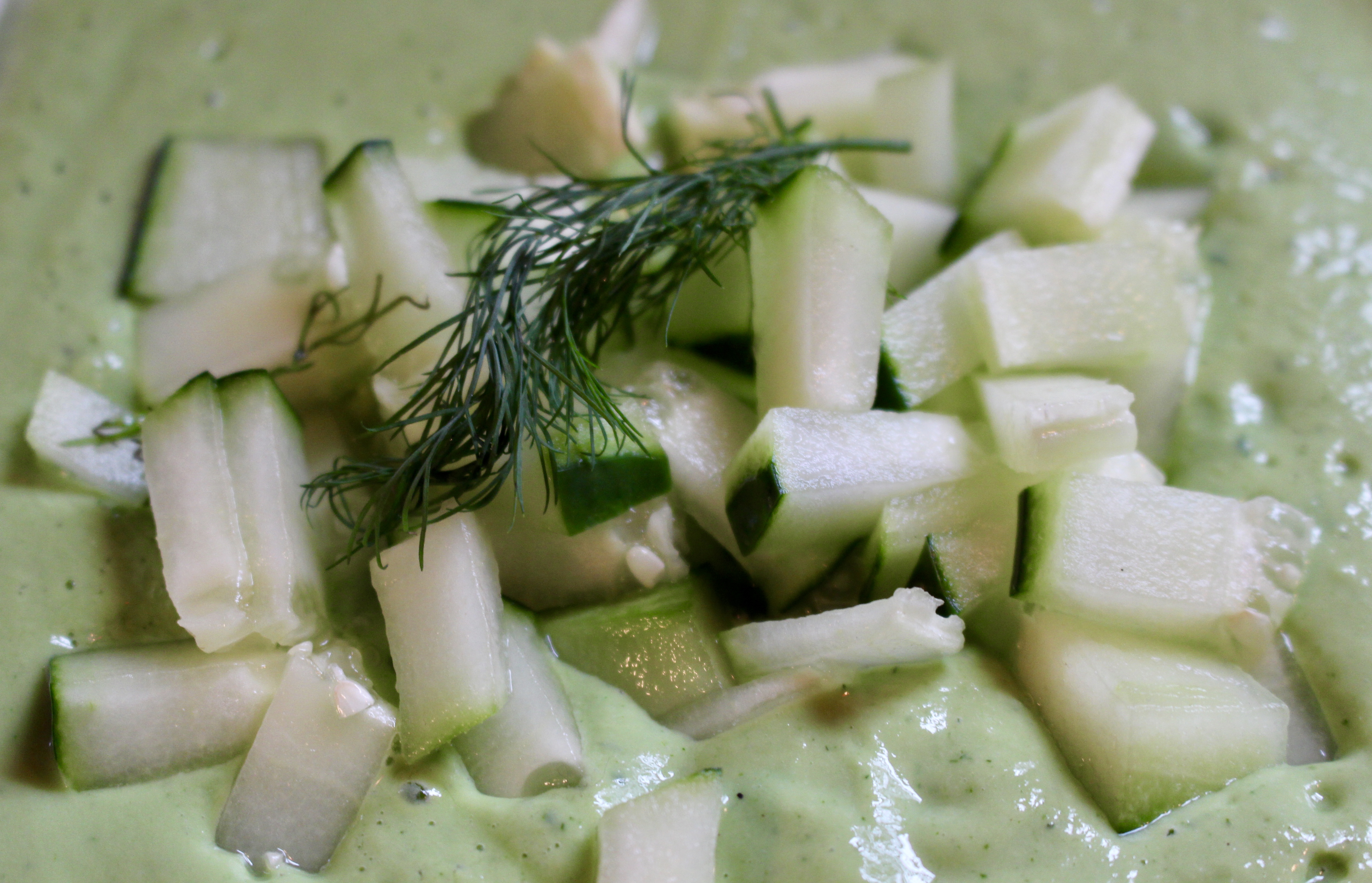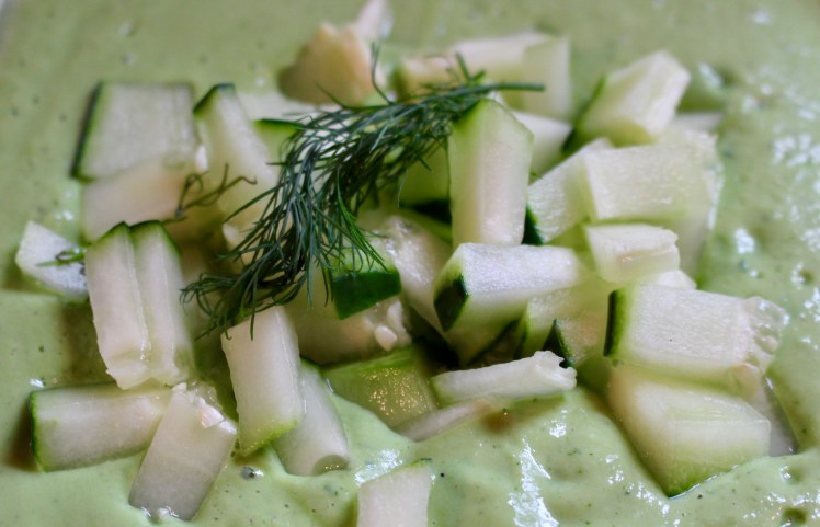 CREAMY CUCUMBER SOUP WITH AVOCADO & DILL (makes one large bowl or two small)