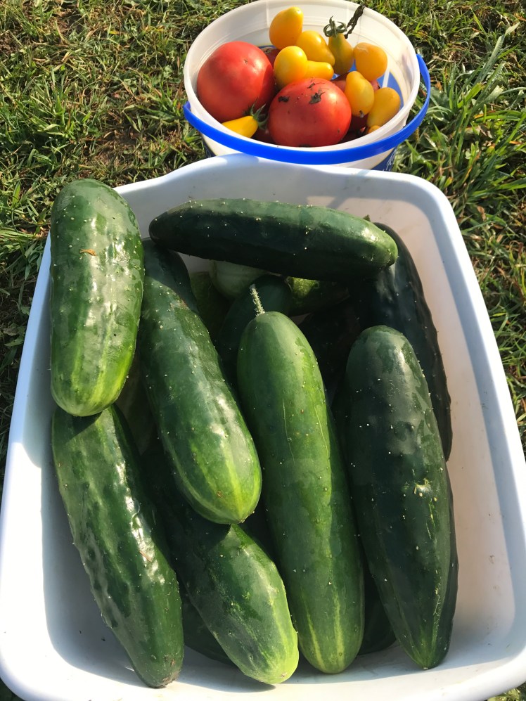 Last year we were able to harvest cucumbers from July until late October. Not only were we able to fill our shelves with quarts of pickles, we were also able to share our bounty with friends.