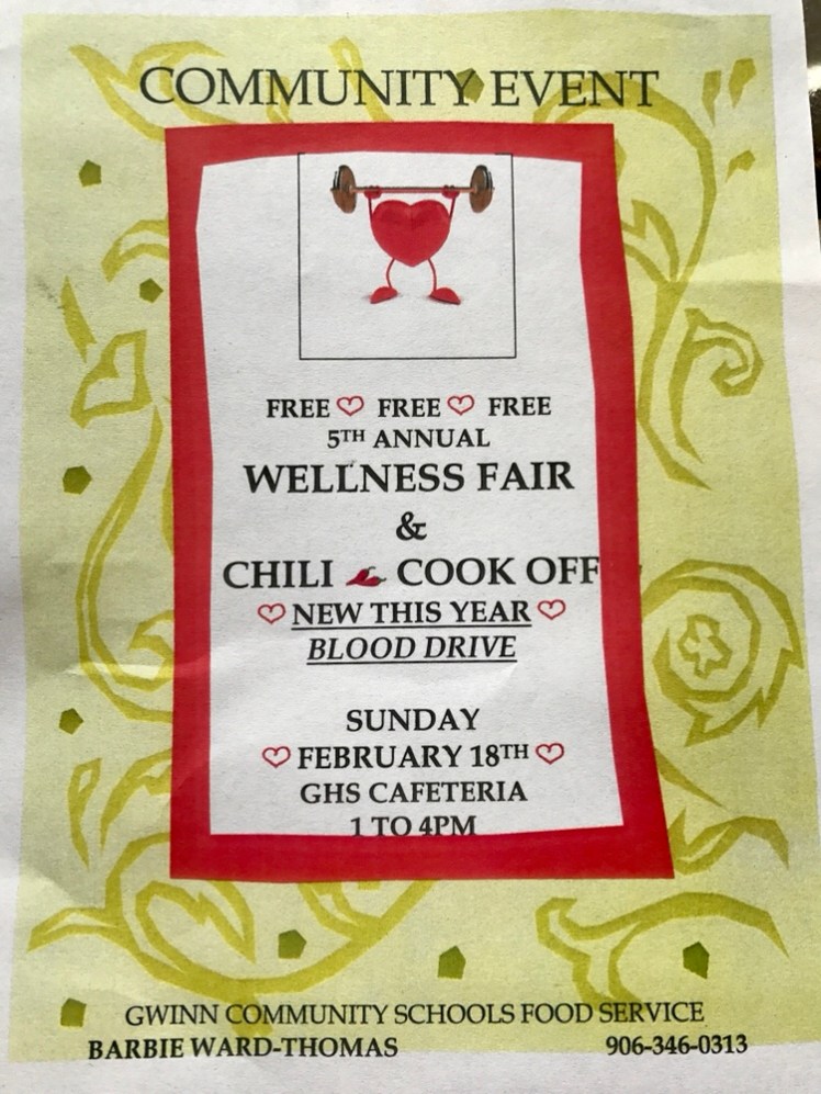 Last weekend I participated in a chili cook off at the 5th Annual Wellness Fair at Gwinn High School. I took first place in the amateur division – winning over two student groups and my boss Sandy Petrovich, the Superintendent of Gwinn Area Community Schools. It was neat to watch Ms. Petrovich and her student competitors banter back and forth. It was exactly how a school function should run – it was well attended and involved all of our education stakeholders. The entire event made me so proud to be a Modeltowner!