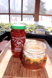 • 1 Tablespoon garlic chili sauce (Warning — chili sauce is SPICY so you may want to add a little at a time. I like heat so I even added more after mixing)