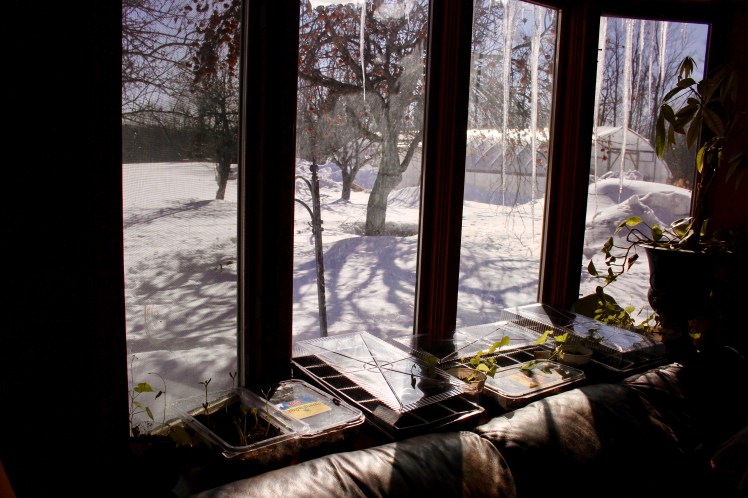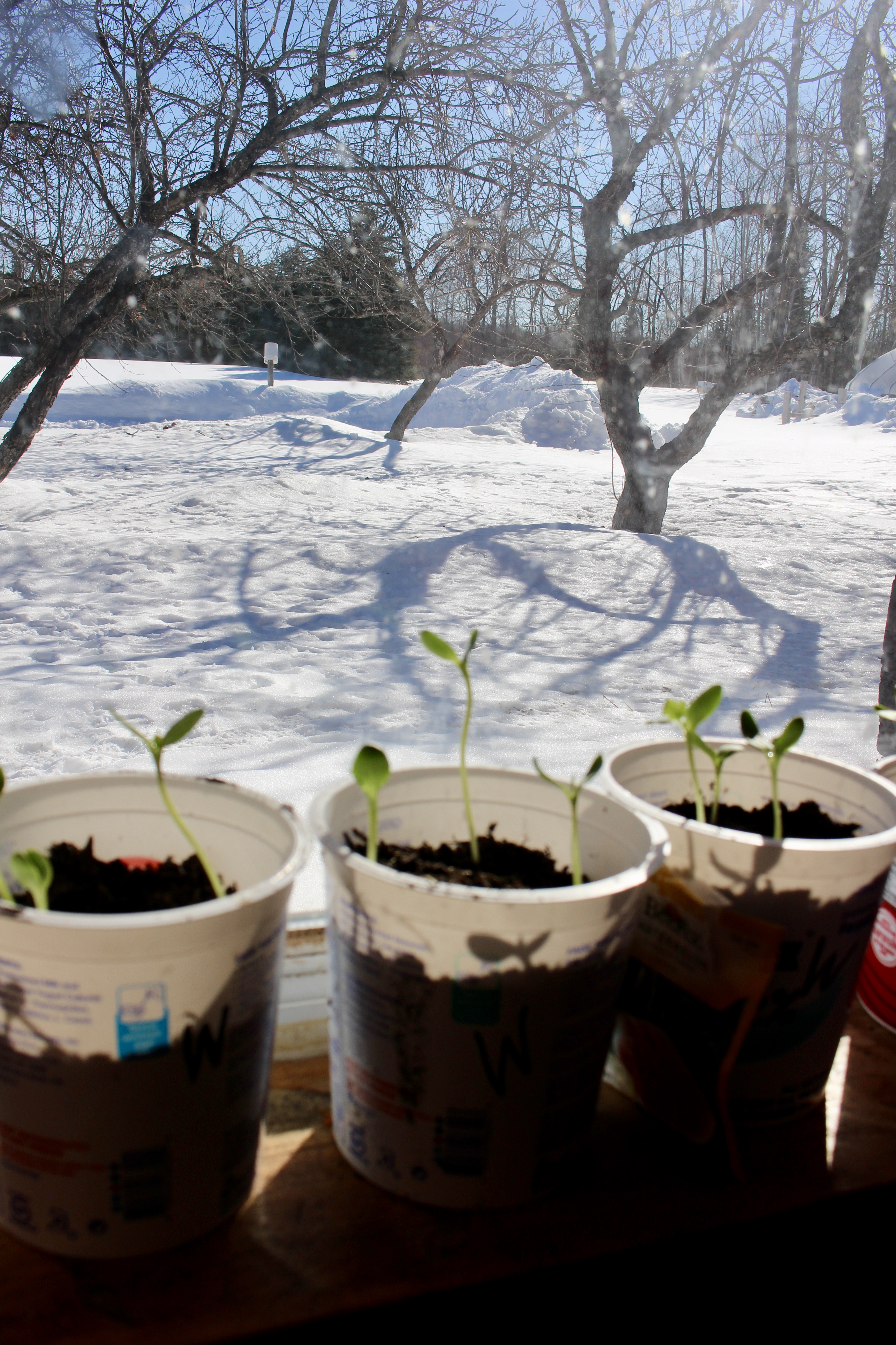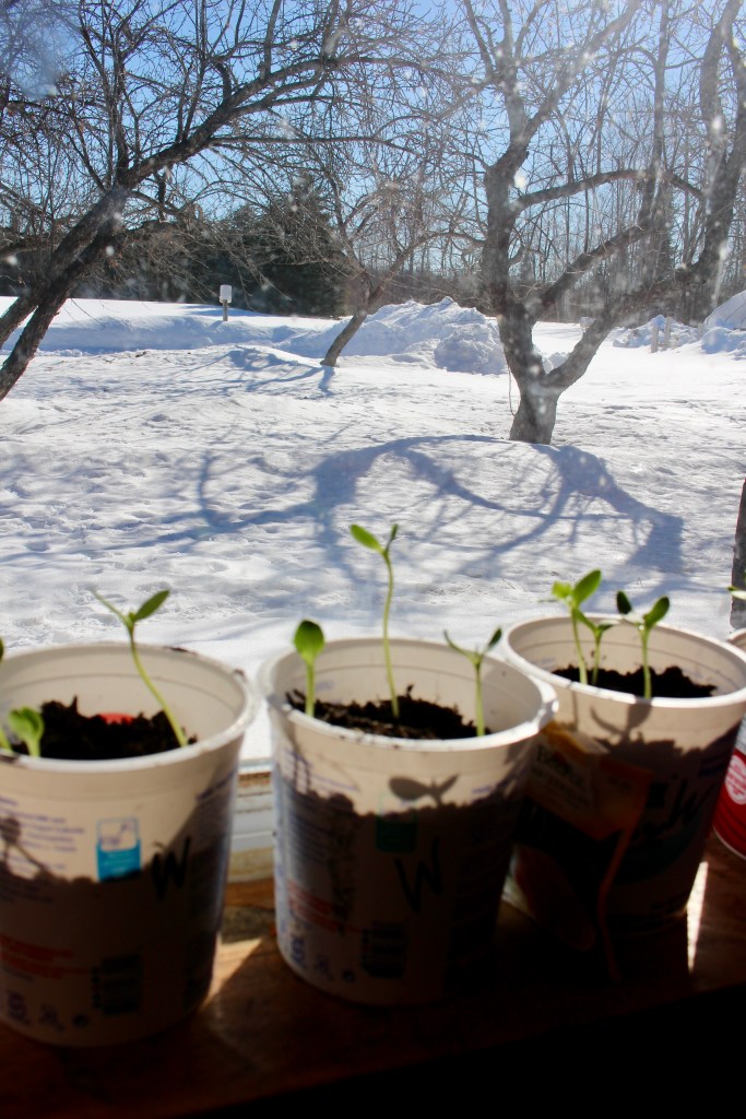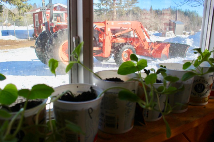 This weekend I am picking up squash seeds (zucchini, yellow summer squash, spaghetti squash, and butternut squash) to also start indoors. While we still have several feet of snow on the ground, on sunny days the temperature is reaching the low 70s in the hoop house. I can already taste the green beans, broccoli, and peas and I cannot wait to be able to pick fresh greens daily for salads.