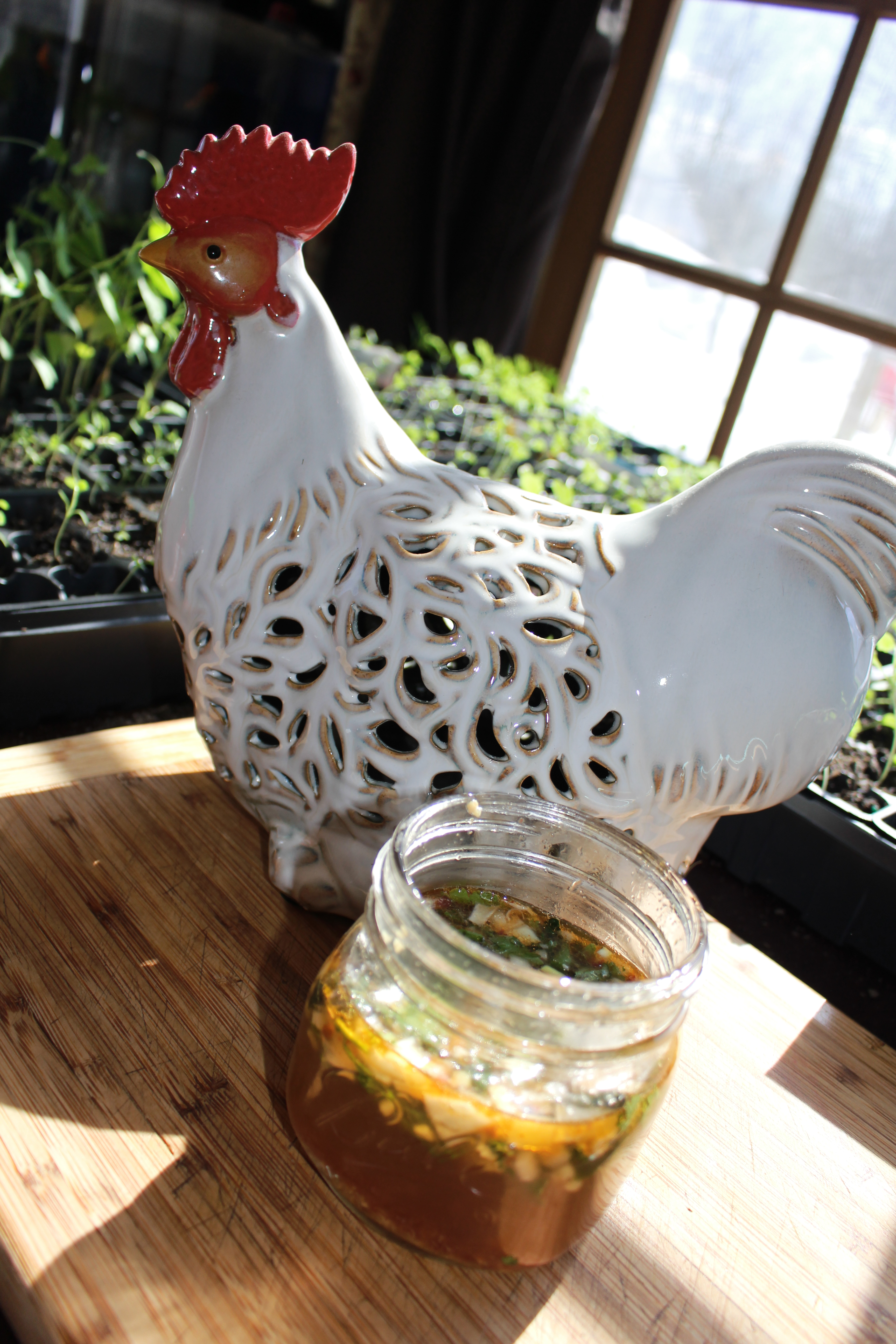 As sure as the geese will return to Upper Michigan skies, this salad will make a great addition to your spring and summer menu. It would be a great dish to bring to a picnic (imagine making small individual salads for everyone in pint jars). The dressing is versatile and while it perks up cabbage or greens in your salad, it is equally delicious drizzled over steamed or roasted vegetables.