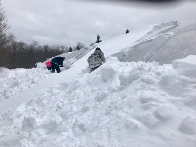 Speaking of the hoop house: check out these photos of John, Avalon, and Lukas digging it out yesterday after the storm.