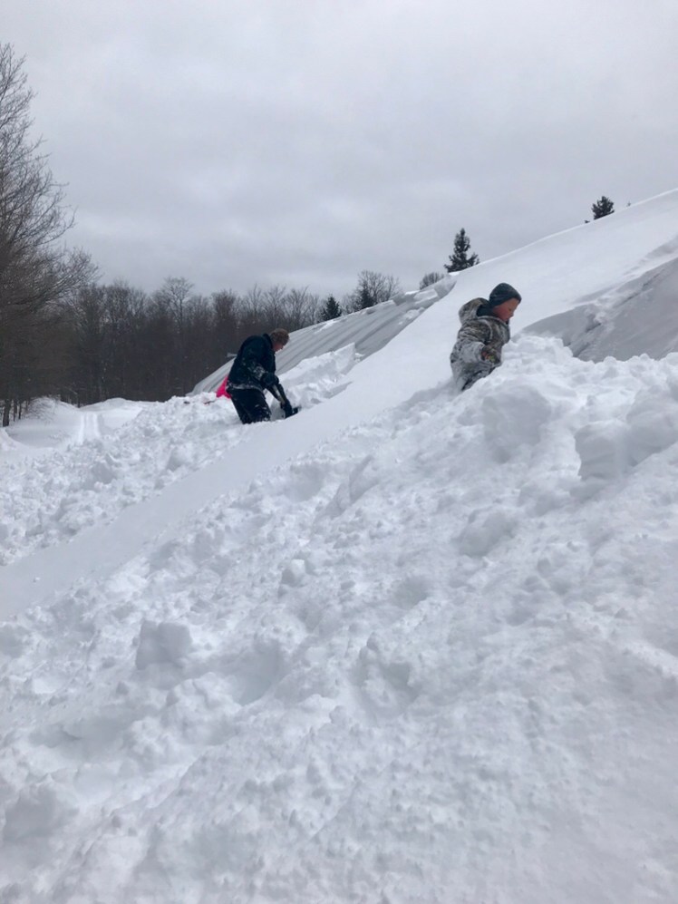 Speaking of the hoop house: check out these photos of John, Avalon, and Lukas digging it out yesterday after the storm.