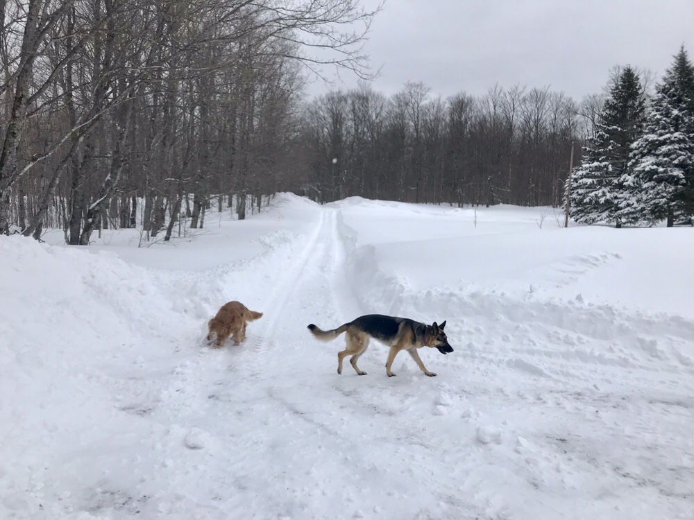 The dogs were in their glory and were exhausted last night after a spirited frolic in the snow!