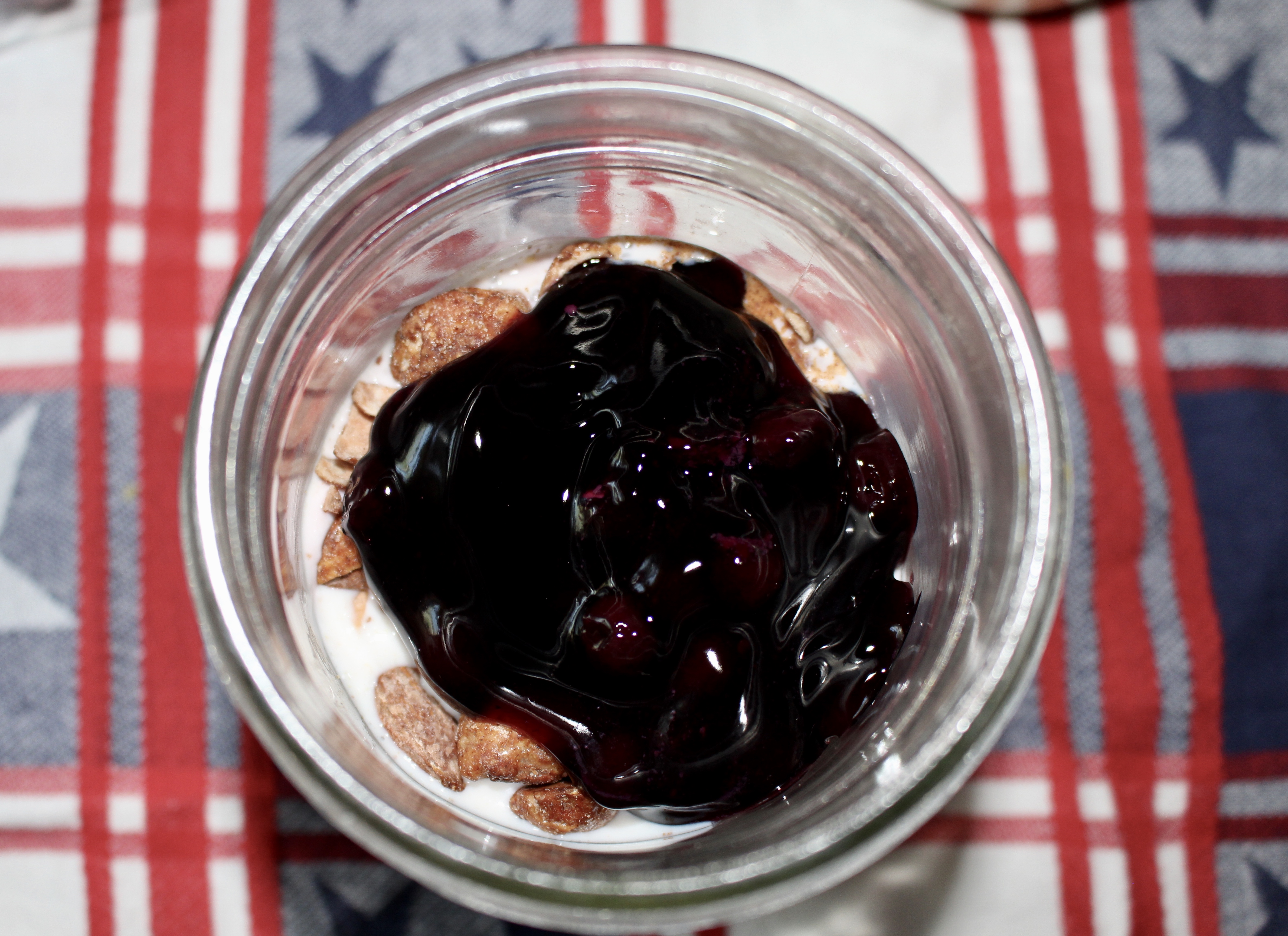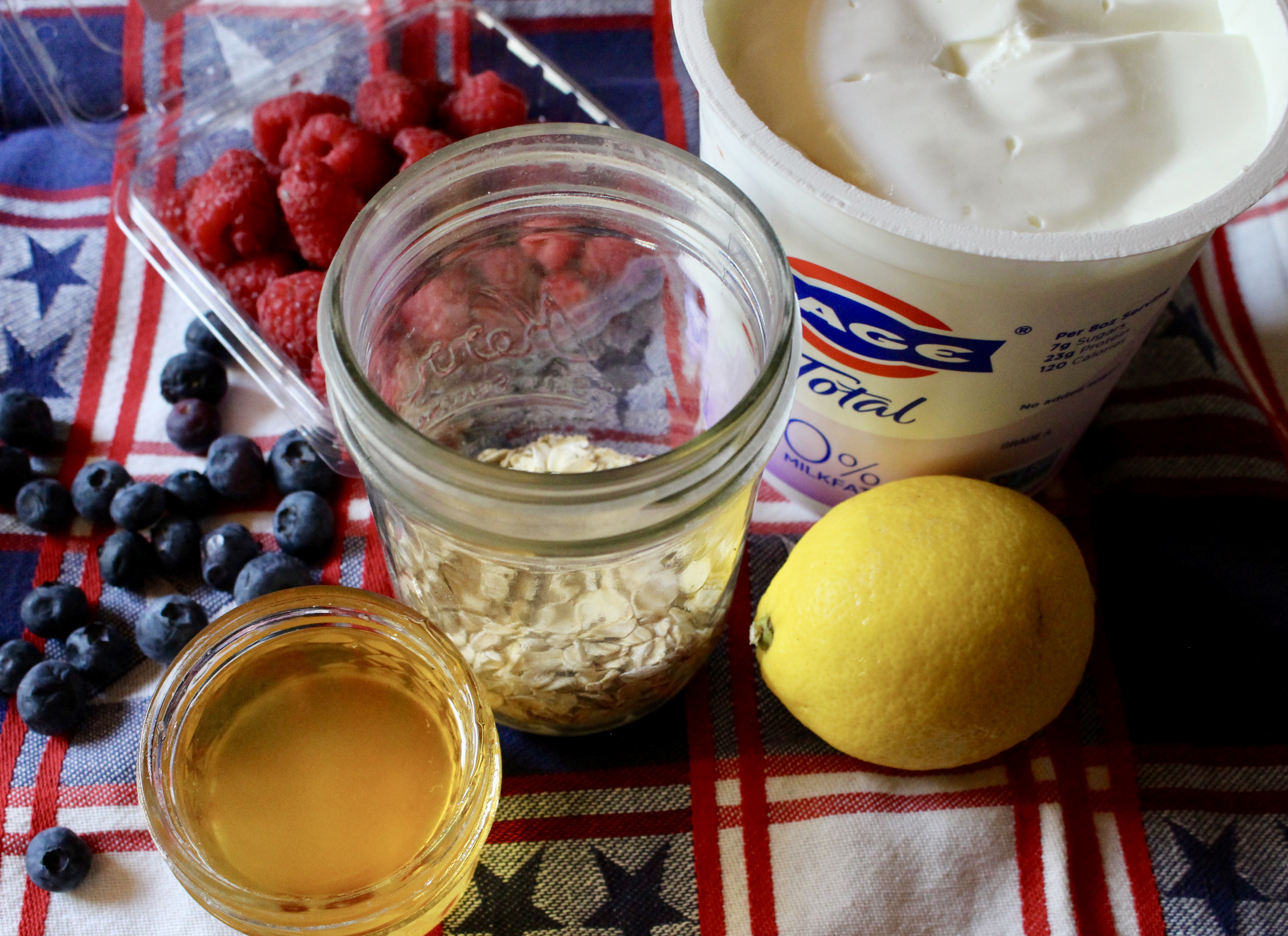 For my husband’s jar I use a ½ a heaping cup of oatmeal and Greek Gods flavored yogurt. My preference is plain Greek yogurt (Fage is my favorite brand) and I add a couple of teaspoons of honey and lemon juice and zest.