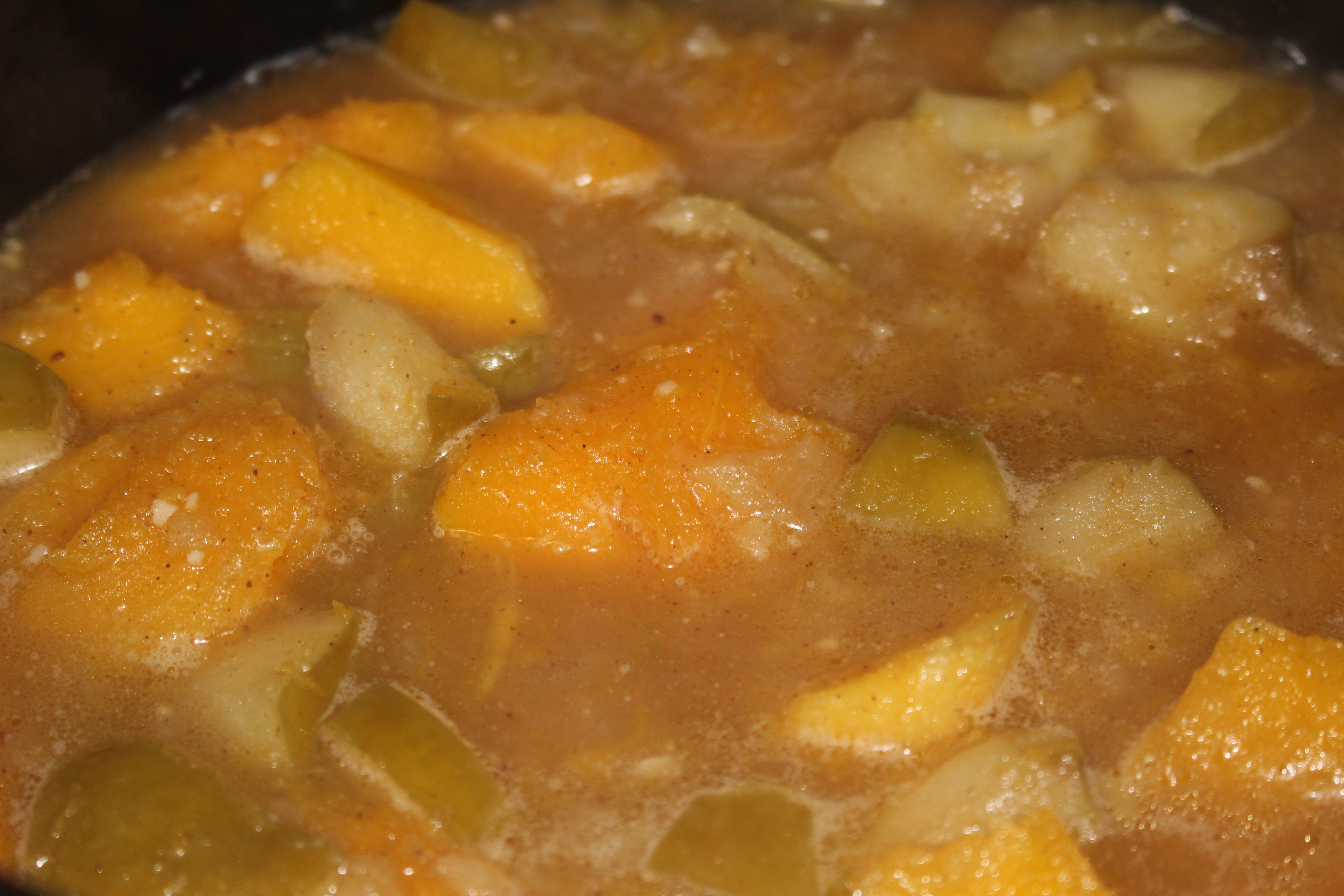 - Add the stock along with apples and squash.
