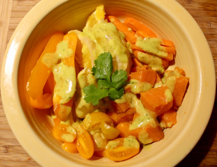 I had winter in mind when coming up with this recipe. I intentionally wanted to create a bright bowl that utilized orange and yellow hued produce specifically for its health benefits. I also wanted to give the dressing a little heat, so I kicked it up with fresh jalapeno.