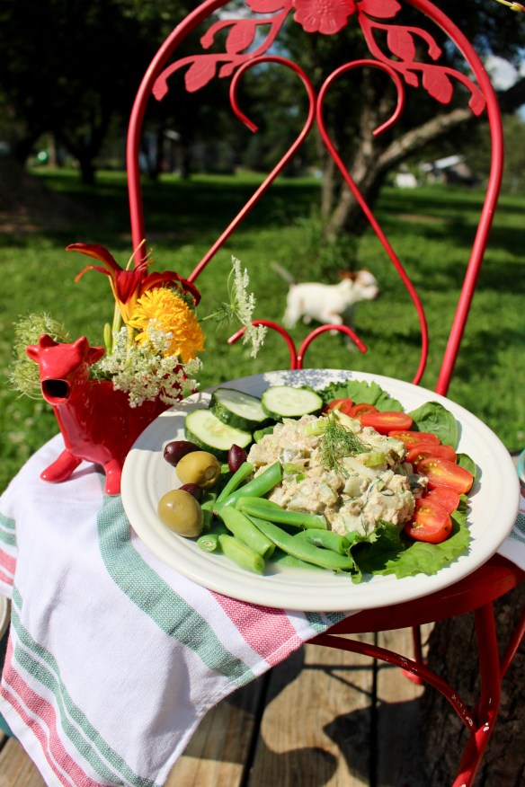 However, I do like to recreate my mom’s tuna salad. I have been thinking that this will be a go-to lunch as we begin the new school year. It will be a low-carb and high protein offering to help push me through the “new normal” of being a high school teacher. Plus, it will help me take advantage of the fresh produce that we still have growing in our summer garden.