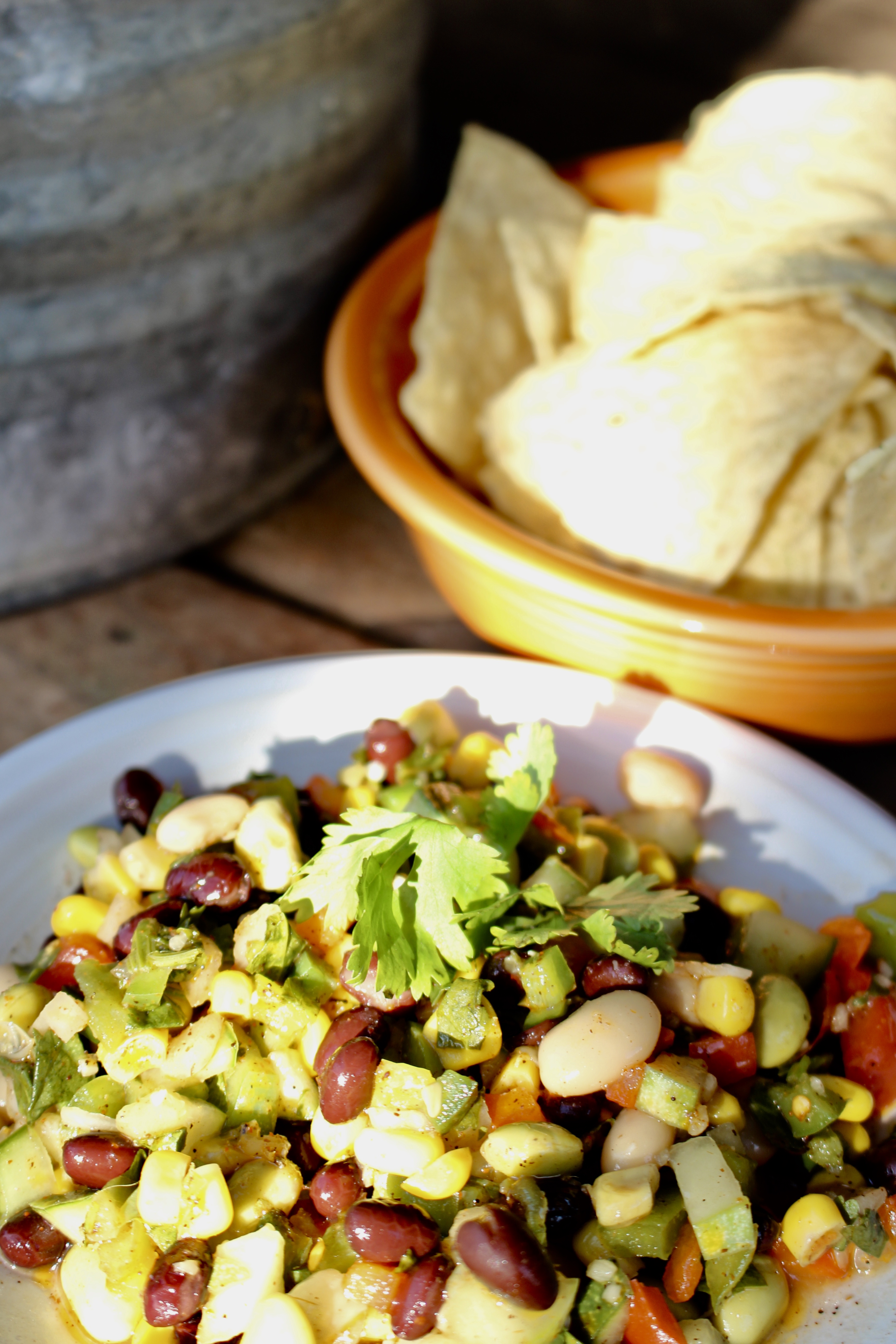 Instead of a standard tomato salsa, this salsa imparts a flavor burst with marinated beans. Therefore, it is hearty and the protein rich beans make it a satisfying snack or even lunch. It is a great wrap or sandwich filler and makes a tasty layer in a Mason jar salad. While it is especially fantastic with tortilla chips (my weakness). I try to incorporate healthier low-carb dippers mini-bell peppers, cucumber wedges, celery or carrot sticks, or even a slice of salami or pepperoni.