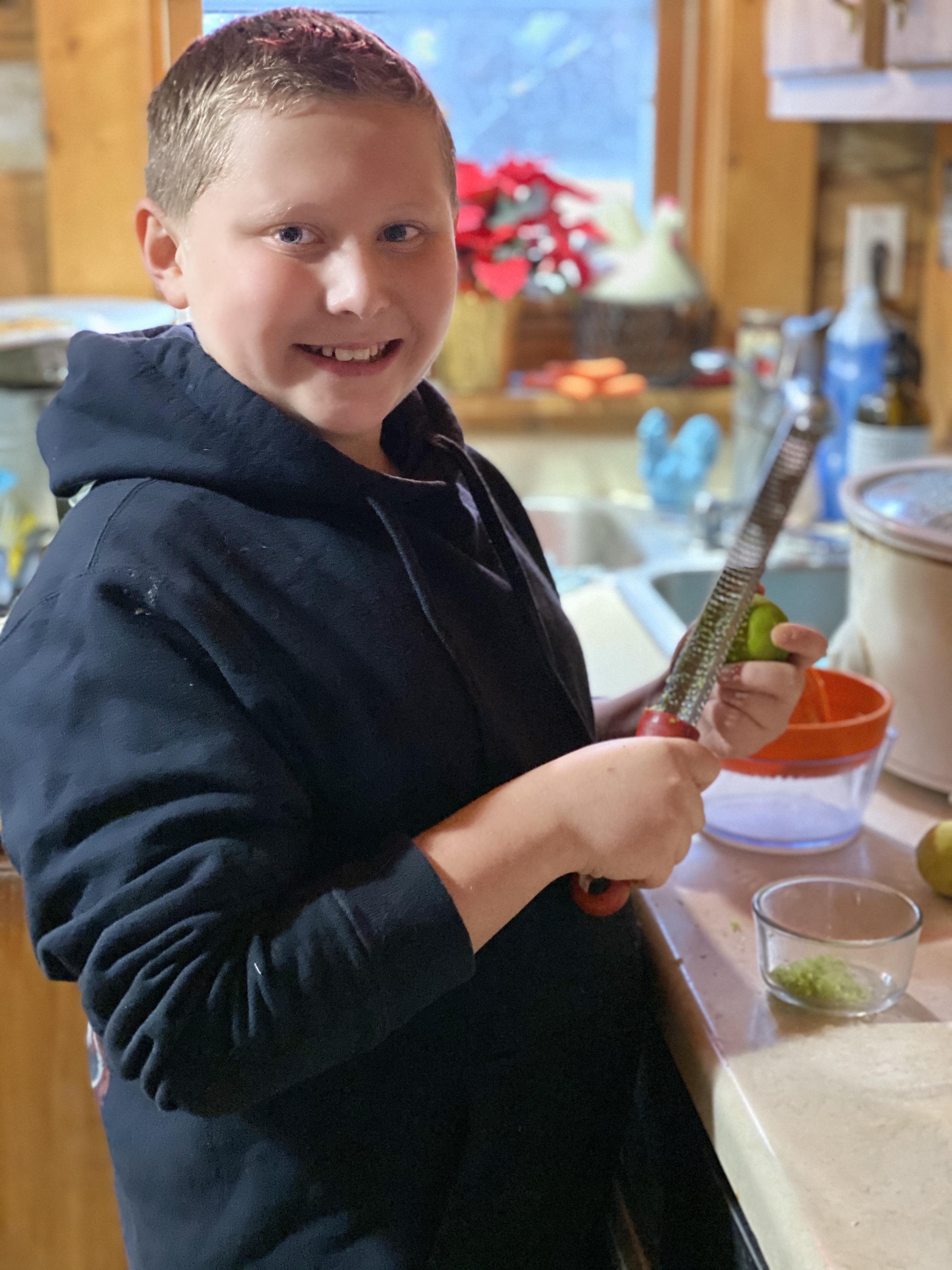 My eleven year old step son, Lukas, helped me make dinner last night, and like always, we solved the world’s problems with our deep and profound conversation. ☺️