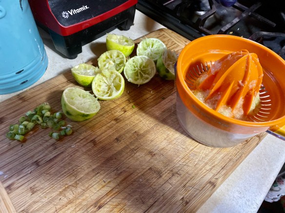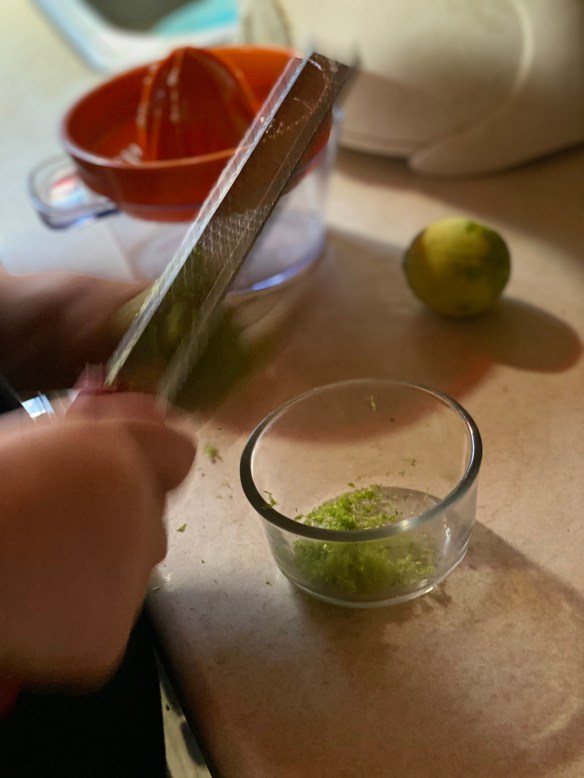 Lukas thought our rice needed some lime. This recipe didn’t include lime, but other HF recipes do. Of course, our veggie crisper has many limes since I love to cook with citrus. So I taught Lukas about the microplane. (Which I feel is one of the most important kitchen tools we own.)