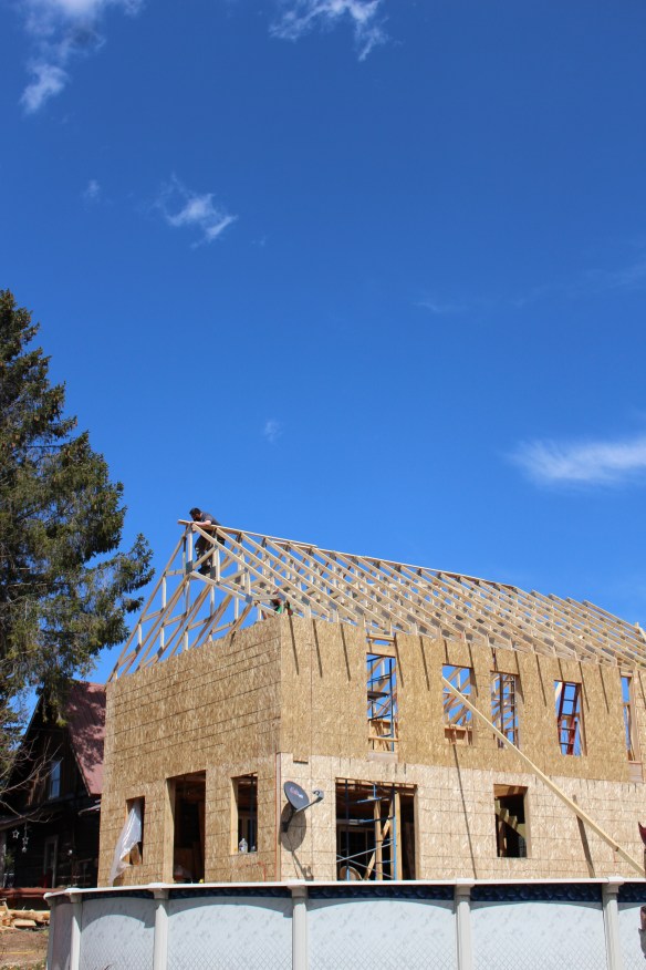 Last year at this time, John was shoveling snow off of the addition and this year it is thankfully all closed in. That is what I call progress!