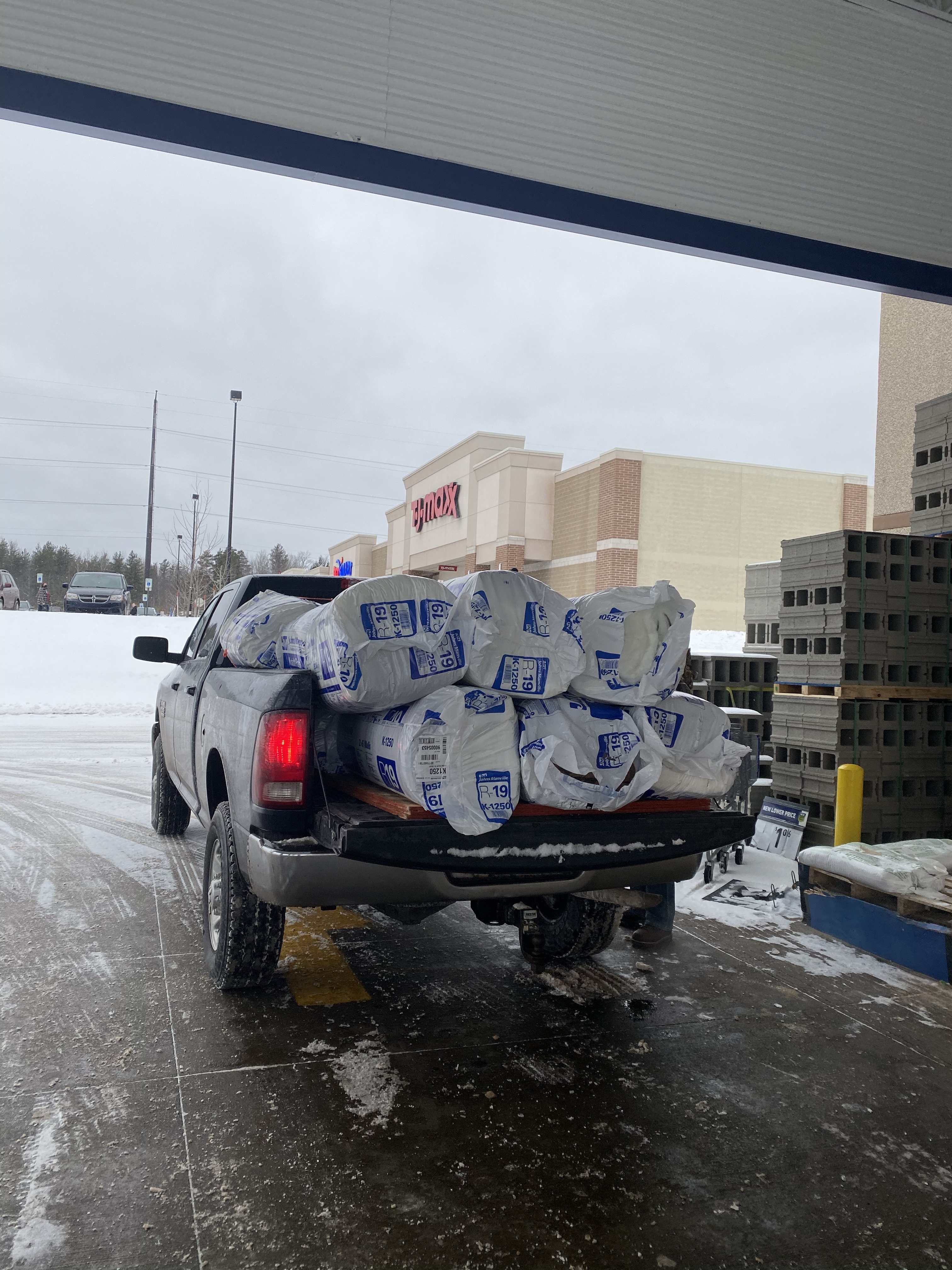 We just purchased the last of the windows (four had to be custom ordered) and this past weekend we bought all the insulation for a walls (this spring a local company will apply spray foam insulation on the ceiling – we figured this would be a smart decision since it’s over 24 feet high).