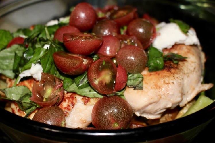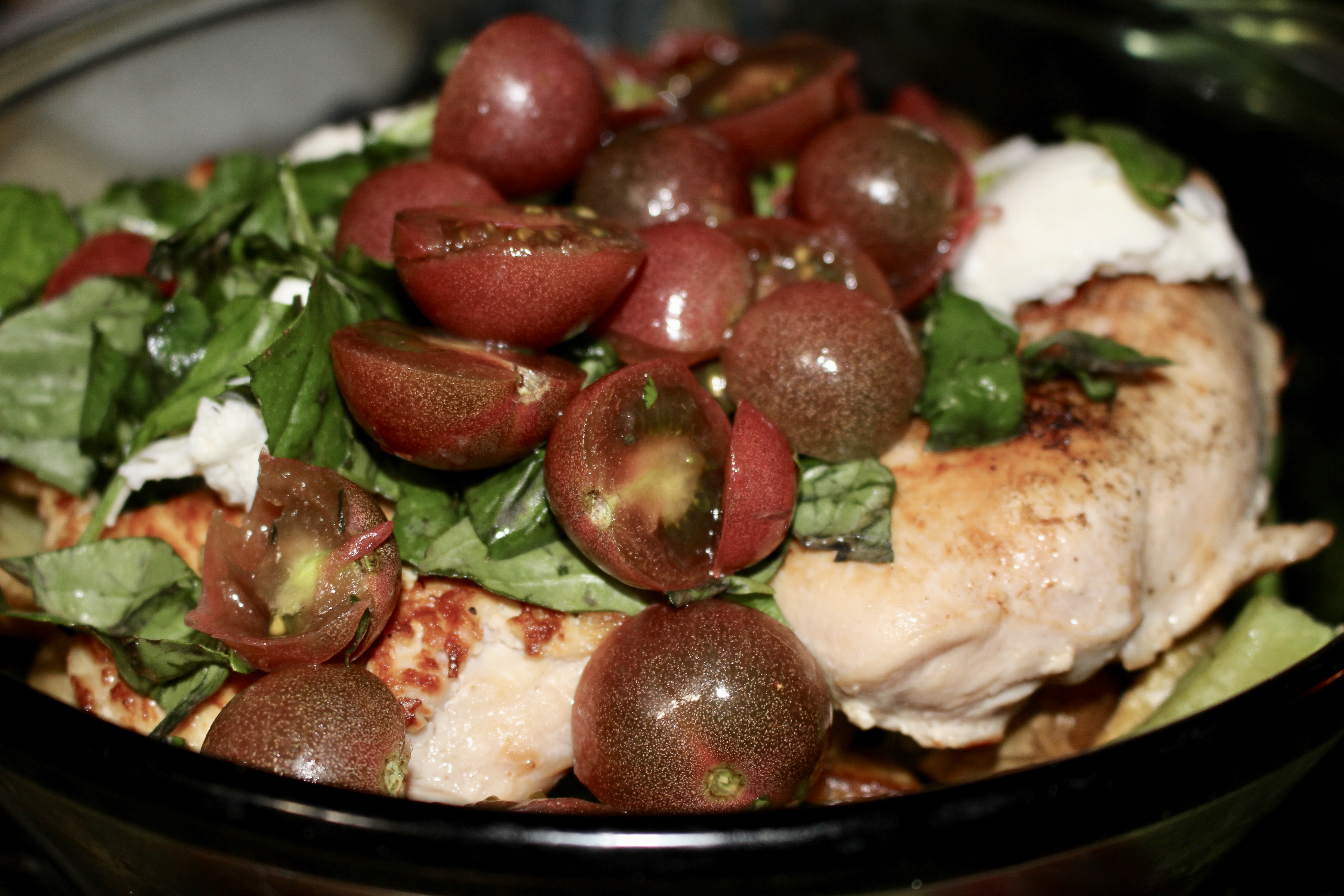 CHICKEN CAPRESE ON A BED OF VEGETABLES