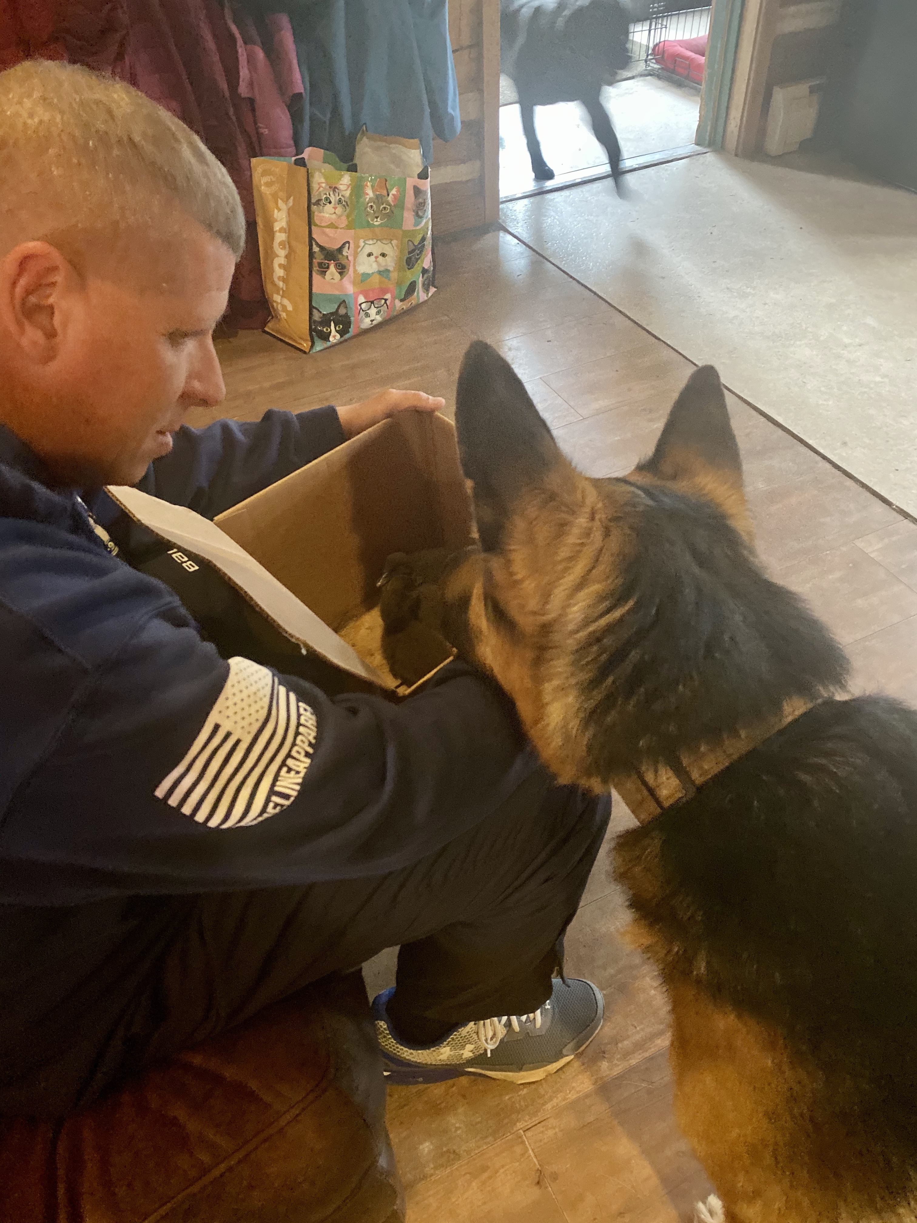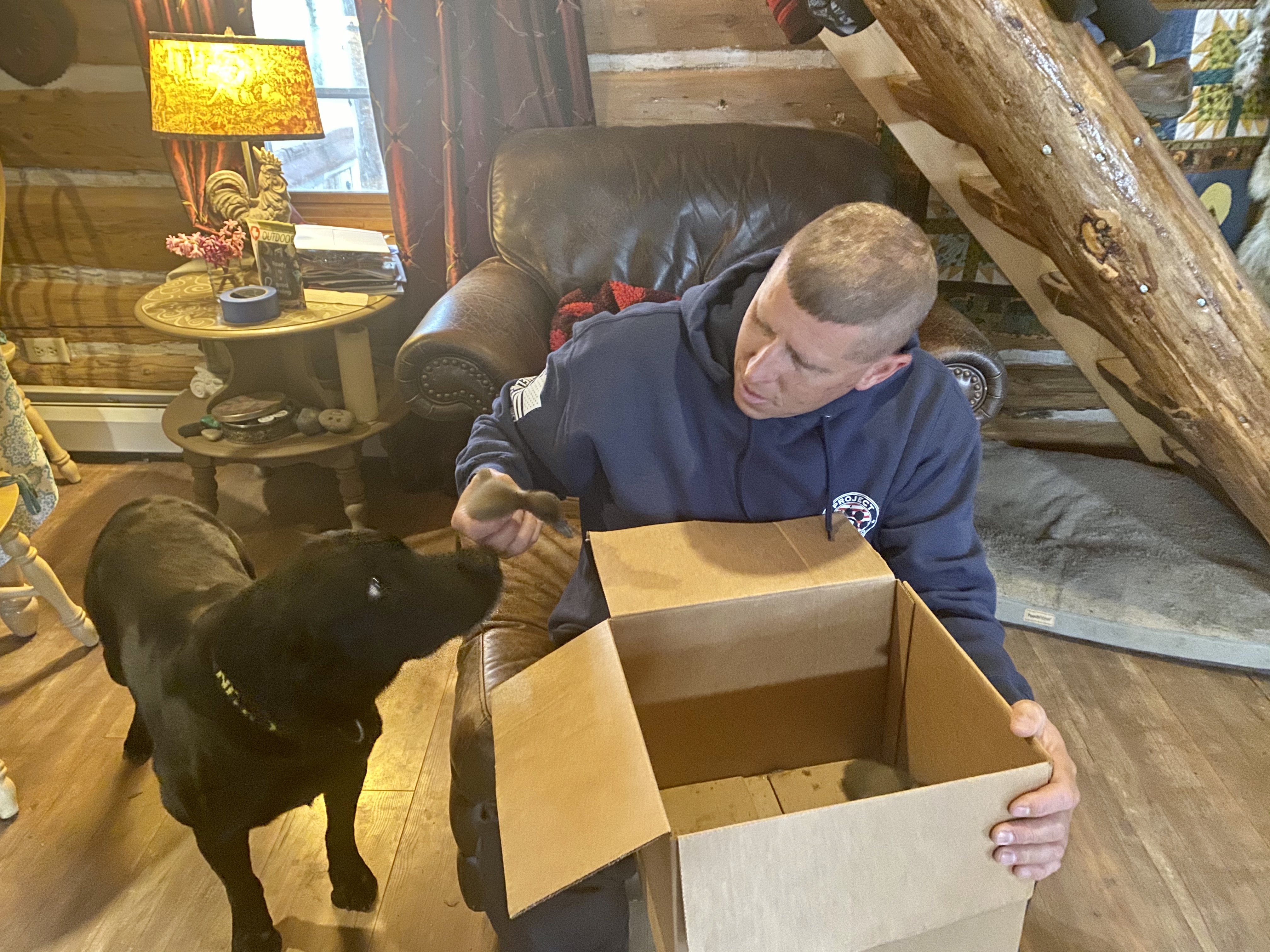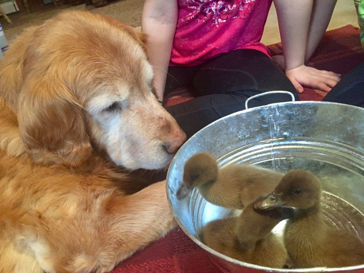 John, once again, came to my rescue and came home with a box of 3 ducklings. I was making dinner and he came up behind me and held up a box. I could hear the tiny chirps and I burst into tears. Fingers crossed that once they are big enough that they imprint on Lucky and that she will accept them as suitable companions.