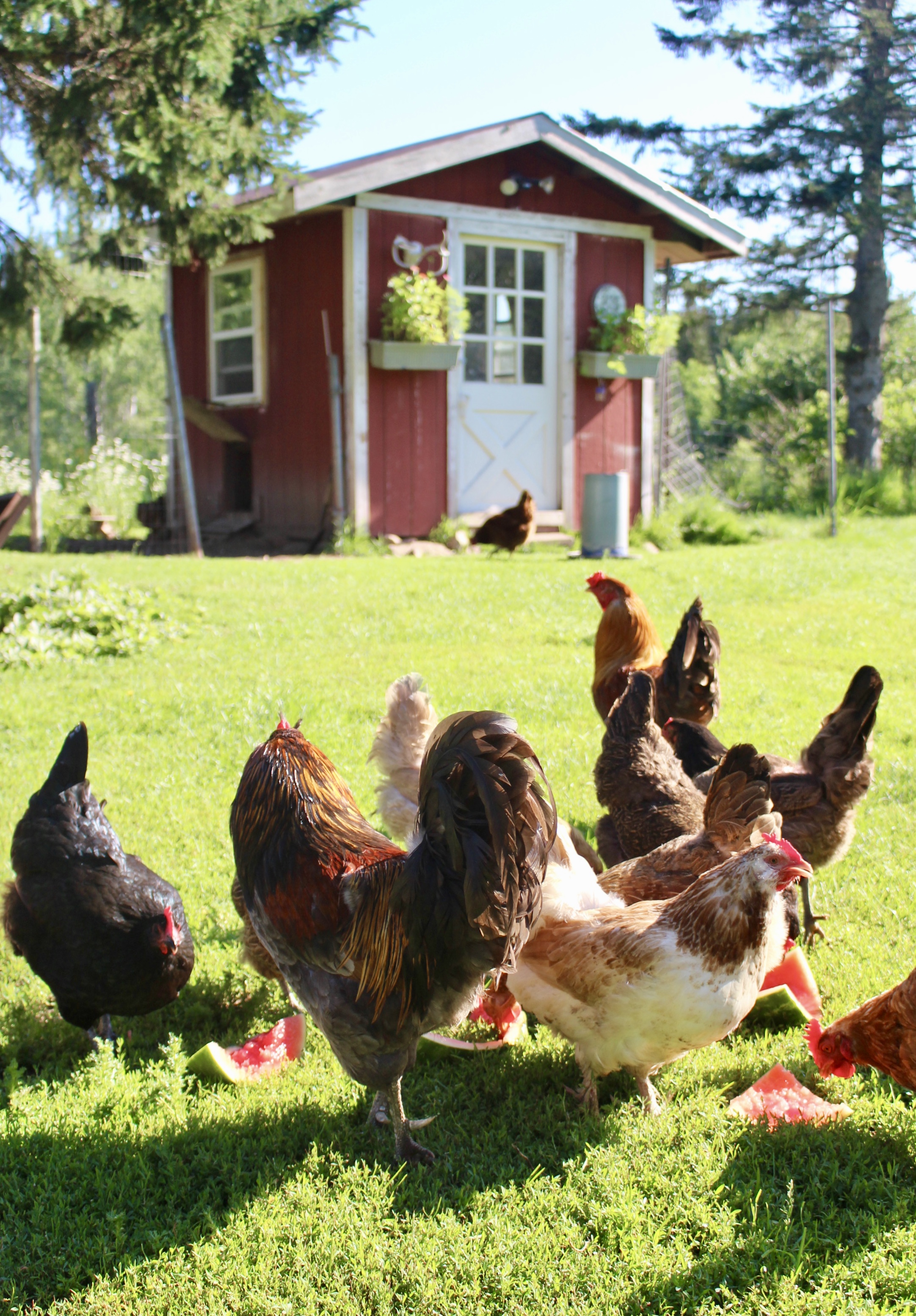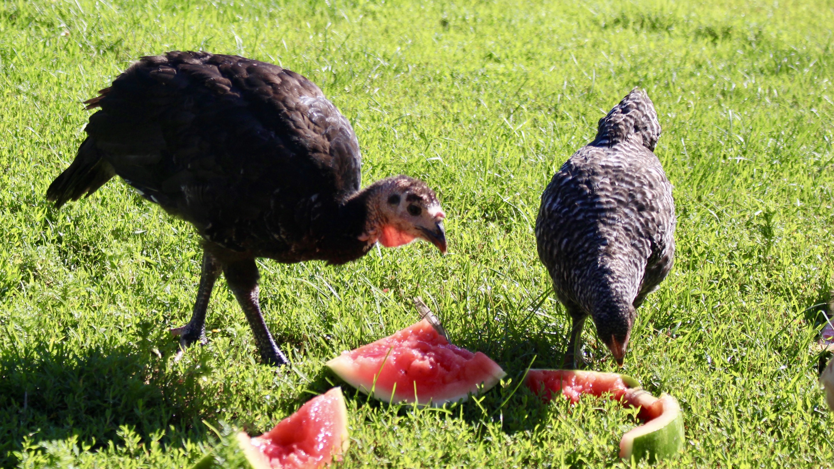 I normally do not purchase watermelon one at a time, I often buy several. The reason being that the humans on the Waldo homestead are not the only ones that love watermelon. In fact, few things in life bring me as much joy as the happy chirps, warbles, and clucks that our hens, roosters, turkeys, and ducks make when I bring them segments of juicy watermelon to feast on.