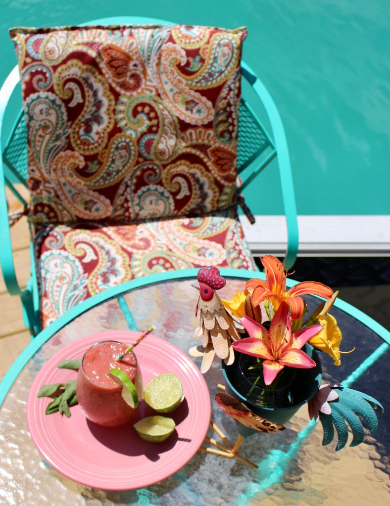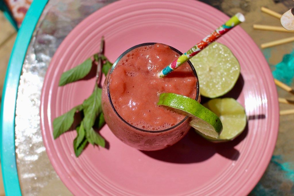 In its most simple form, it’s a slush. However, with the addition of spinach, kale, radish, turnip or other greens from your garden or the farmer’s market – you can turn it into a green smoothie. Or with a jigger of your favorite spirit – you can turn it into an adult beverage. Do whatever your body NEEDS to cool down from the heat and feel refreshed.