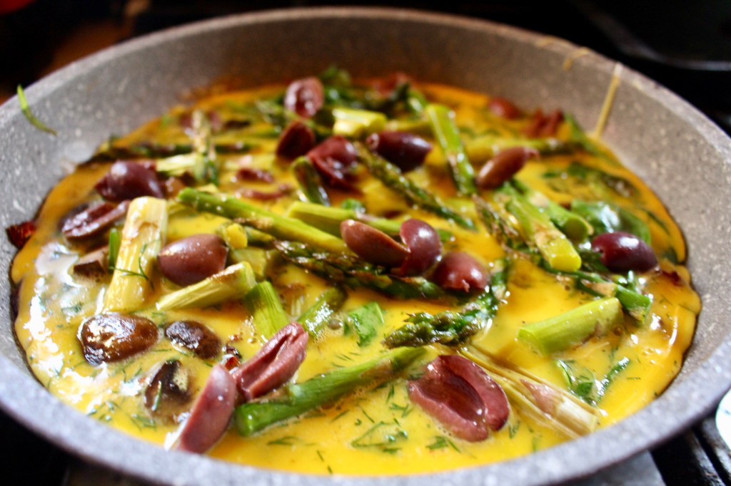 ASPARAGUS, MUSHROOM, & GOAT CHEESE FRITTATA